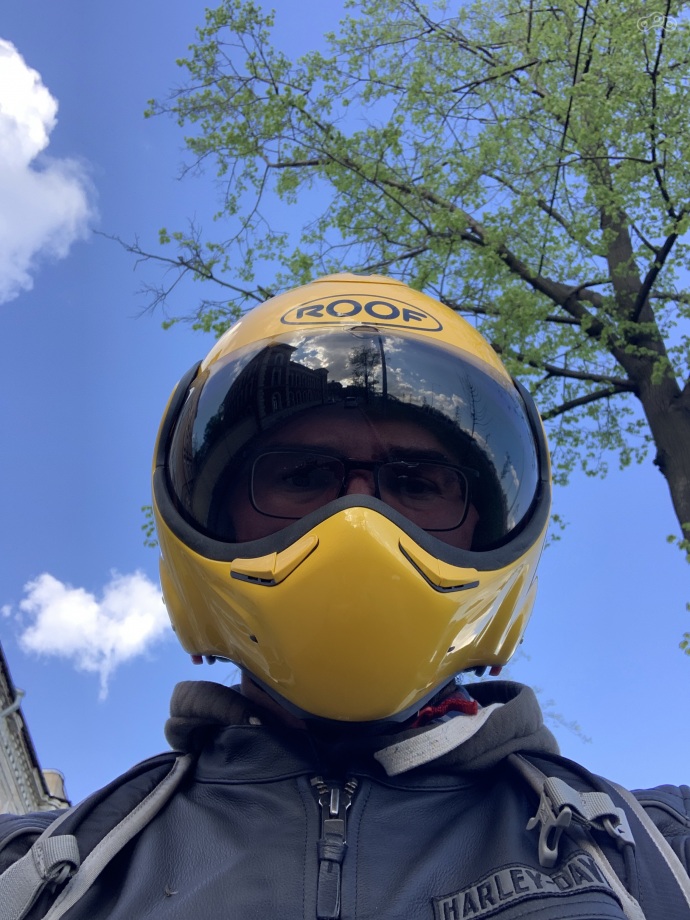 Я вчера просто помыла свой мотоцикл в честь праздника, а ночью пошел дождь... А почему желтая башка?))