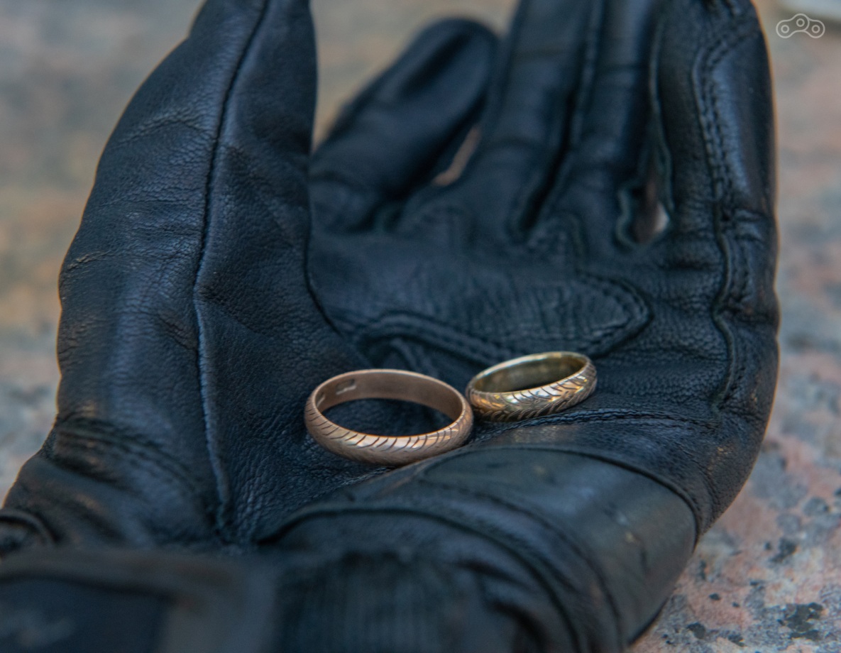 С чего начинается свадьба? Конечно же, с предложения. А где предложение, там и кольца. А раз свадьба у мотоциклистов, то и кольца - особенные. Оба фамильные, подготовлены членом семьи. Специально обученная фирма сделала гравировку на заказ, за что я им очень благодарен.