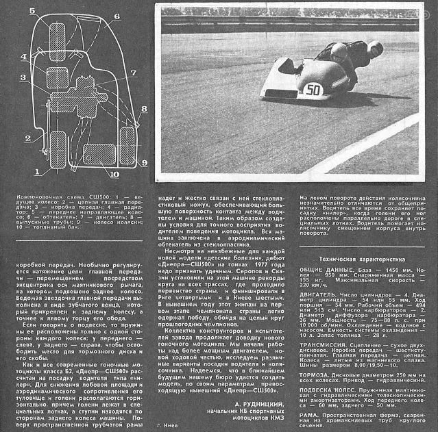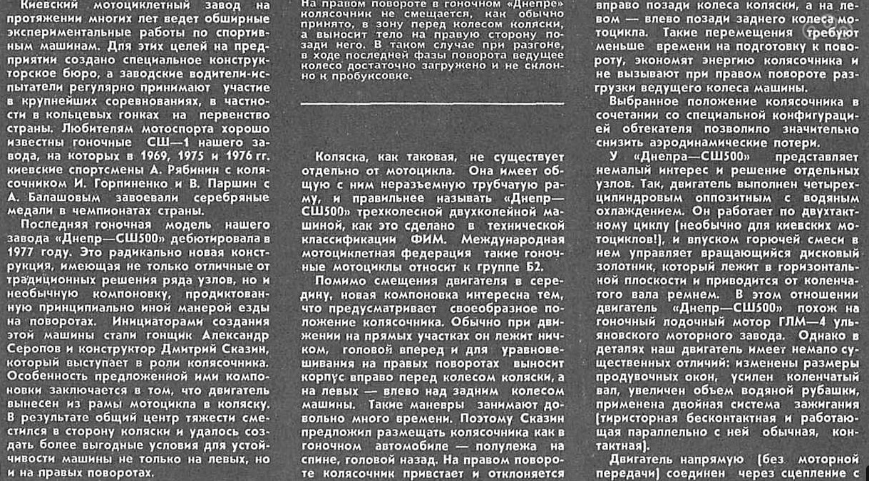 Рассказ о шоссейно - кольцевых колясках 80х мы начнем с продукции Киевского Мото Завода. Гонщики на Днепрах достойно выступали на внутрисоюзных и международных соревнованиях и неоднократно становились чемпионами СССР.