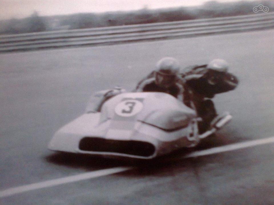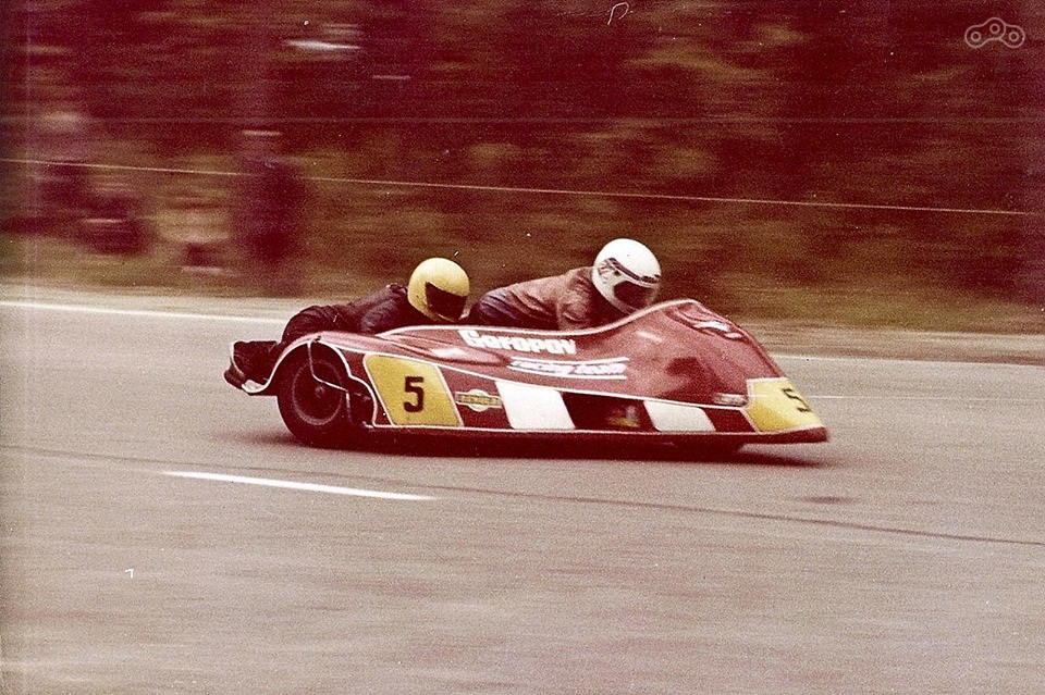 Днепр на международной гонке борется за лидерство с колясочником Сузуки, судя по компоновке, из страны с левосторонним движением.