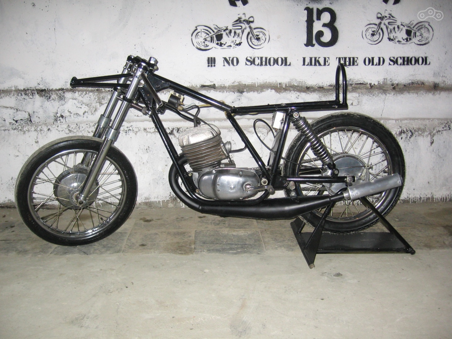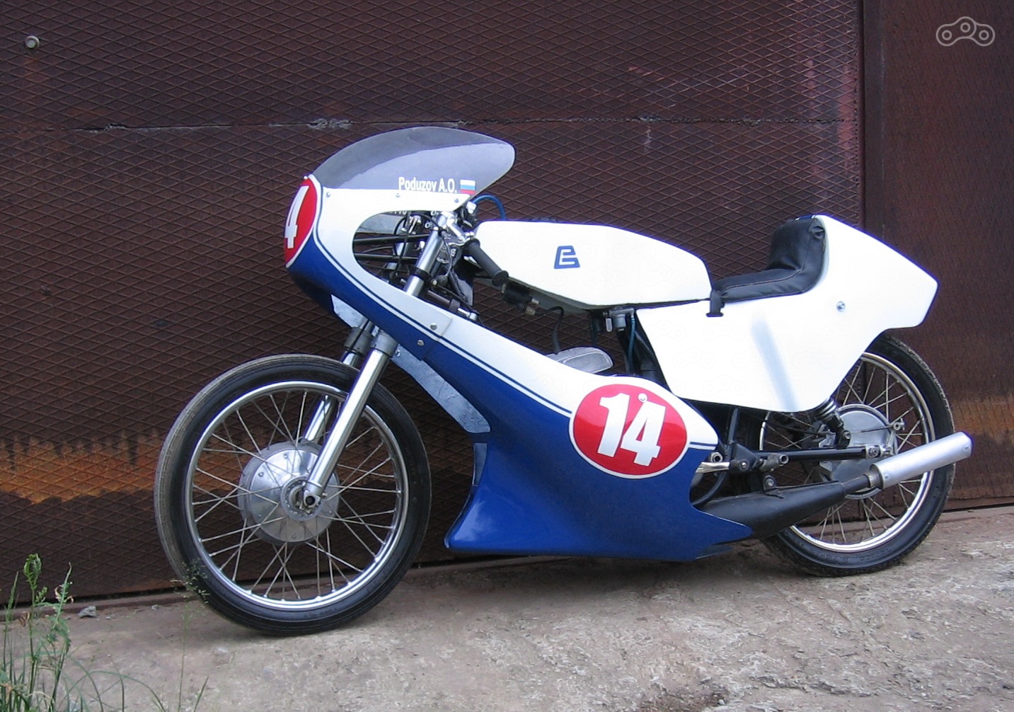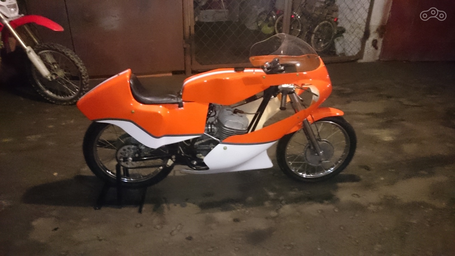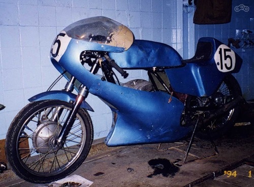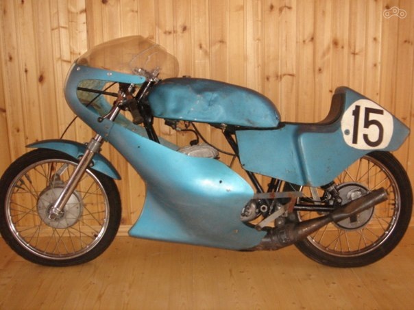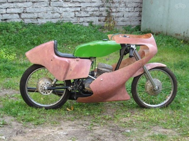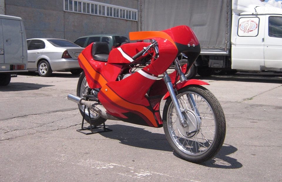 В таком виде мотоцикл выходил с завода - бак зеленого, синего или оранжевого цвета и неокрашенный гелькоут пластика.