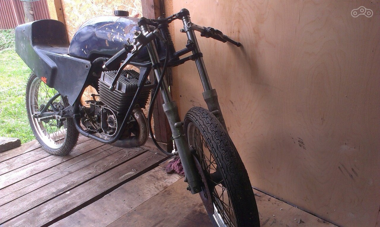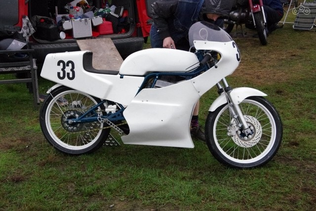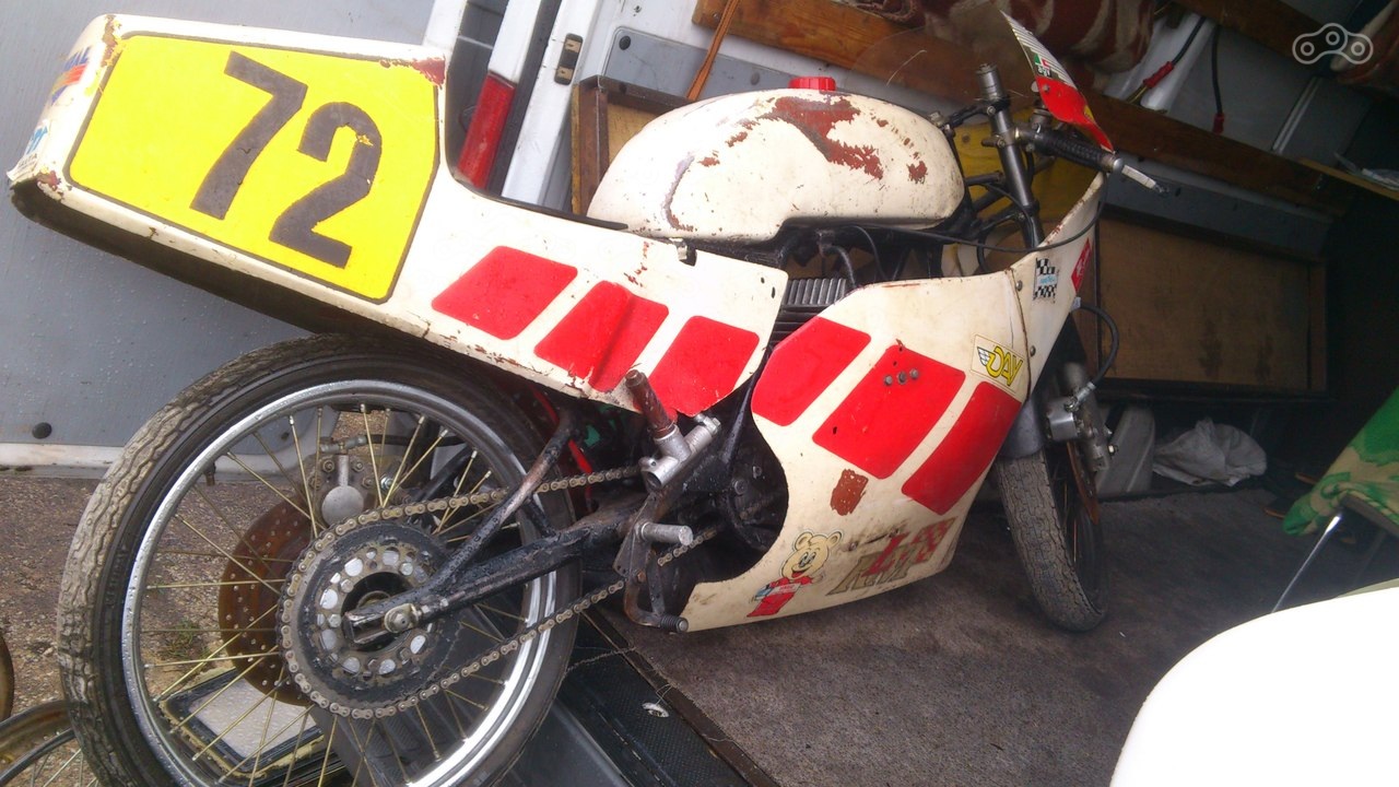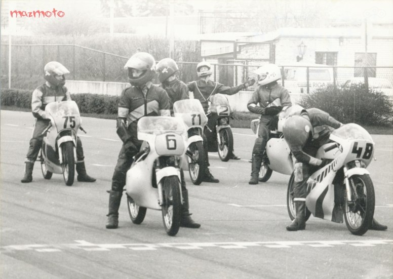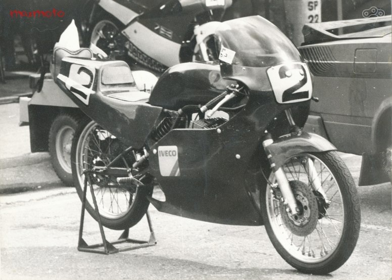 Мотогонки 80х, класс до 125 куб.см, на старте 3.216 и 3.227. Как видим, на поул можно было пробиться и на 3.216, а ведь его начали выпускать аж в 1977 году! Видимо, разница между этими мотоциклами не была такой уж огромной. Мотоцикл под номером два можно рассмотреть подробнее -