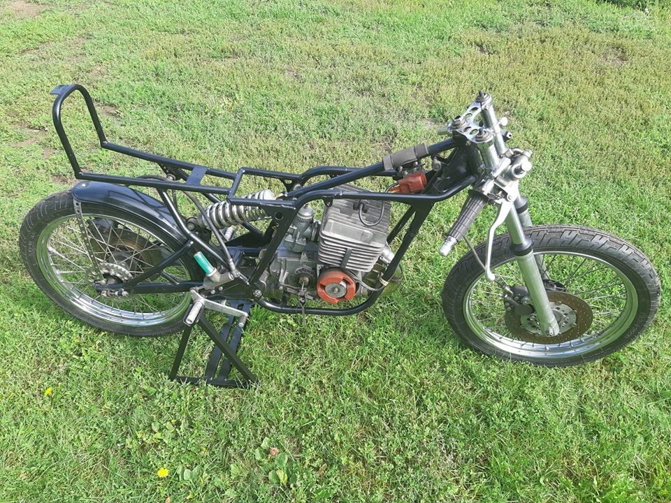 Мотоцикл из Латвии. Видна левая крышка двигателя под зубчатую передачу.
