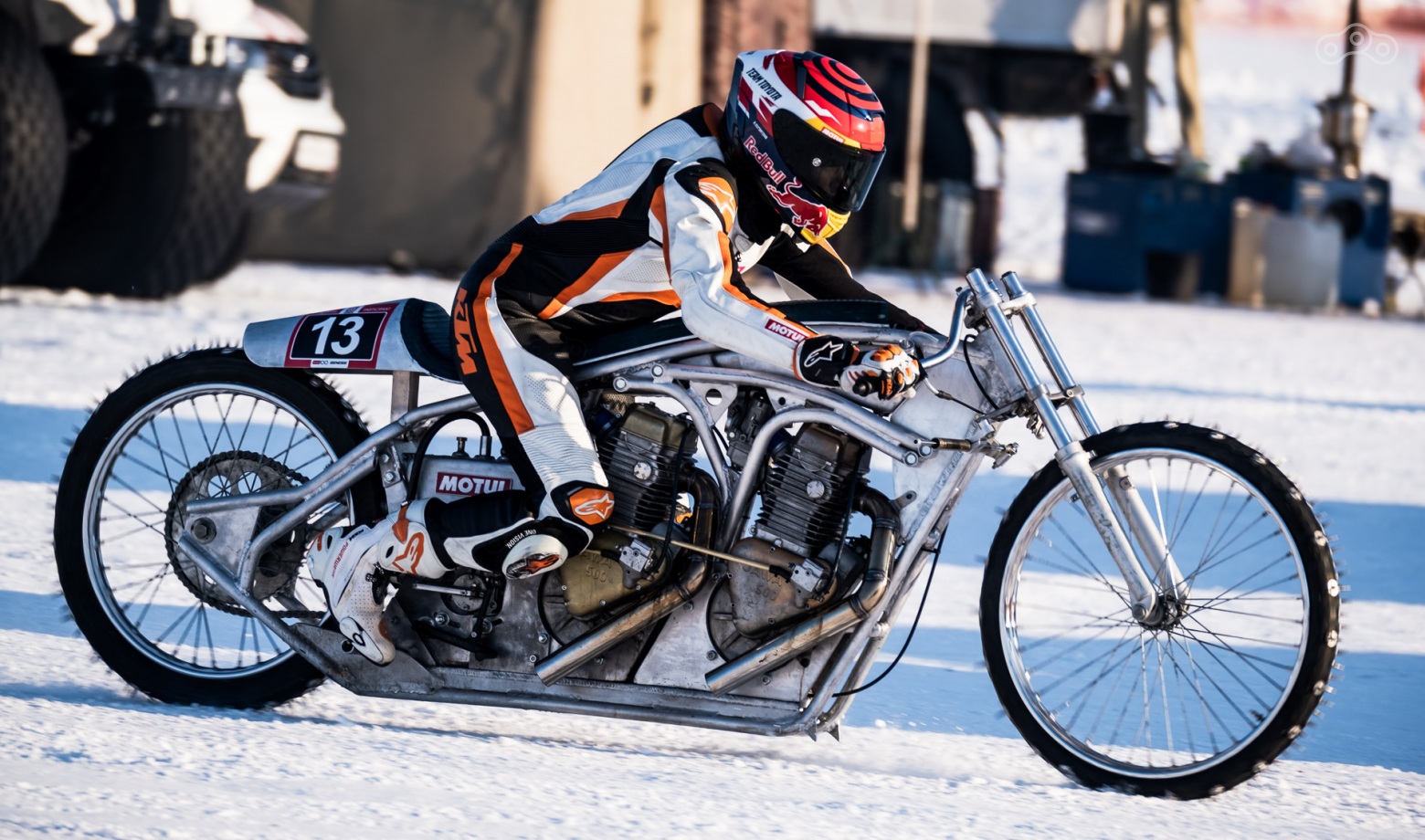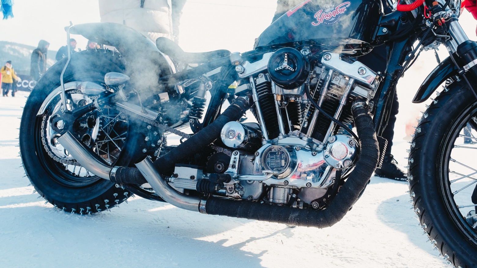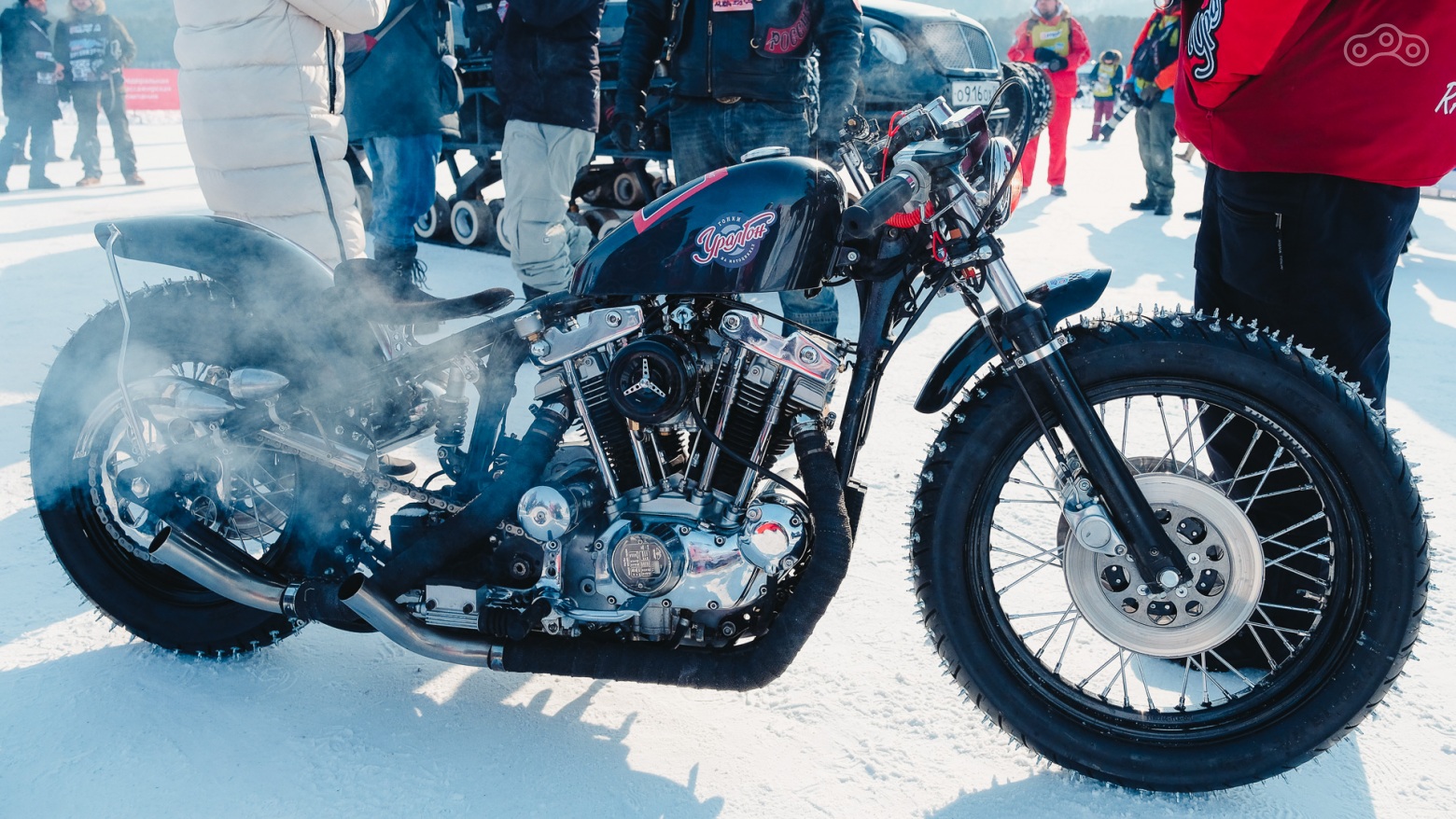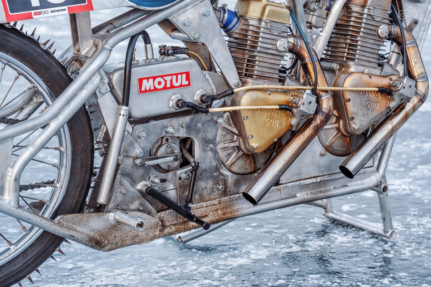 Шипы слева, как у спидвейного мотоцикла.