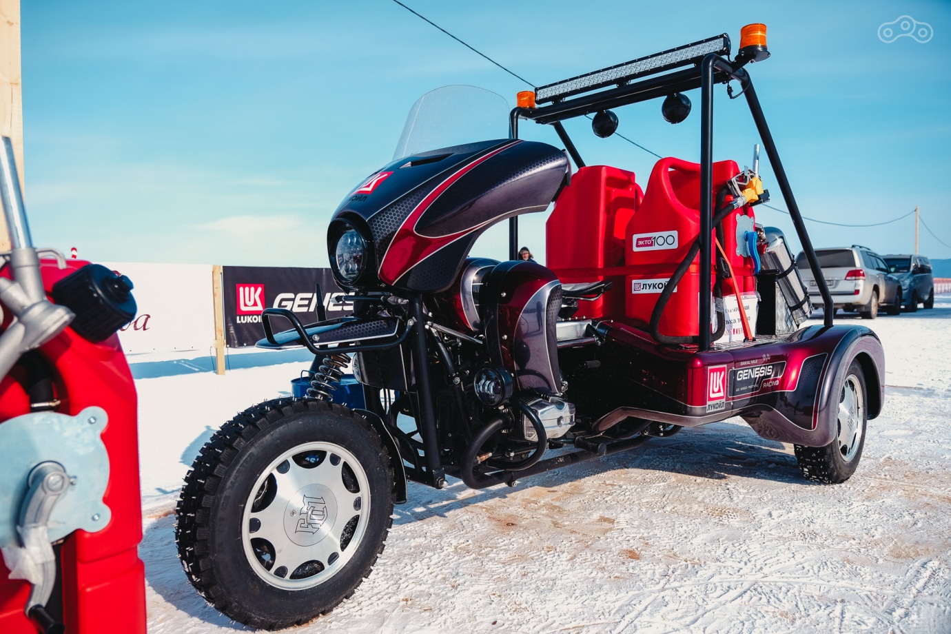 АЗС на специальной платформе, что бы не пролить топливо на лед — требование экологов. Литр сотого по 50 рублей.