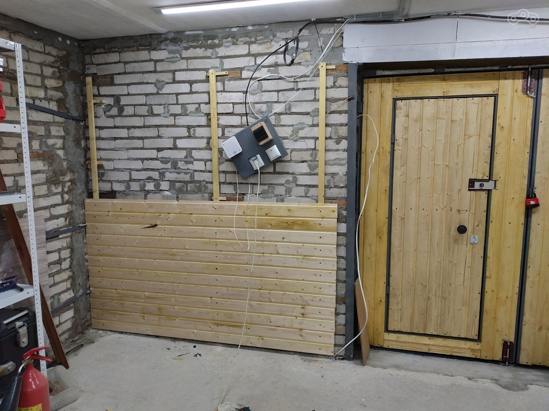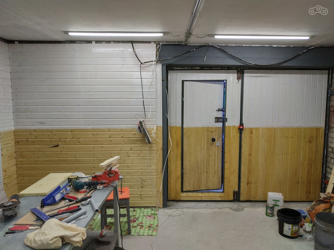 Kolyuchiy, Ниже песчаная земля, поэтому не было смысла ещё песок везти. От стен только плёнкой, которая была проложена. Пол покрасил краской по бетону, но она оказалась совсем не айс, легко шкрябается. Поэтому когда-нибудь в планах полирнуть пол и покрыть финишкой какой-нибудь.