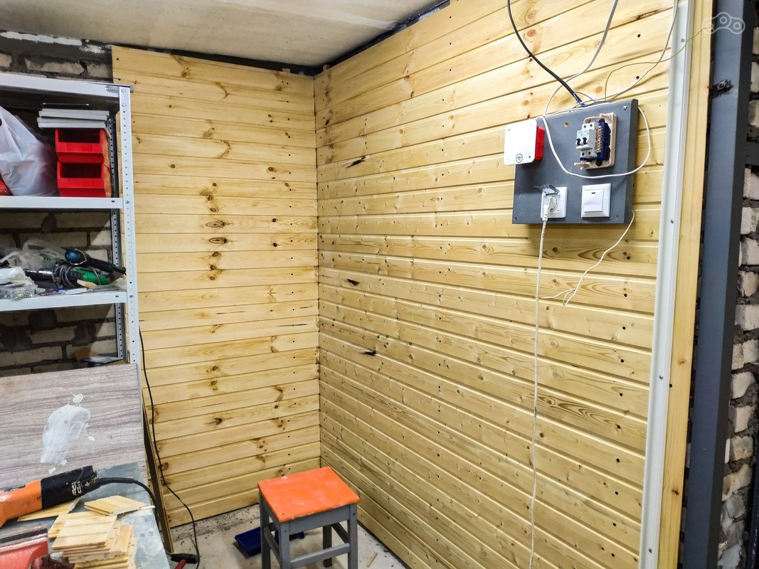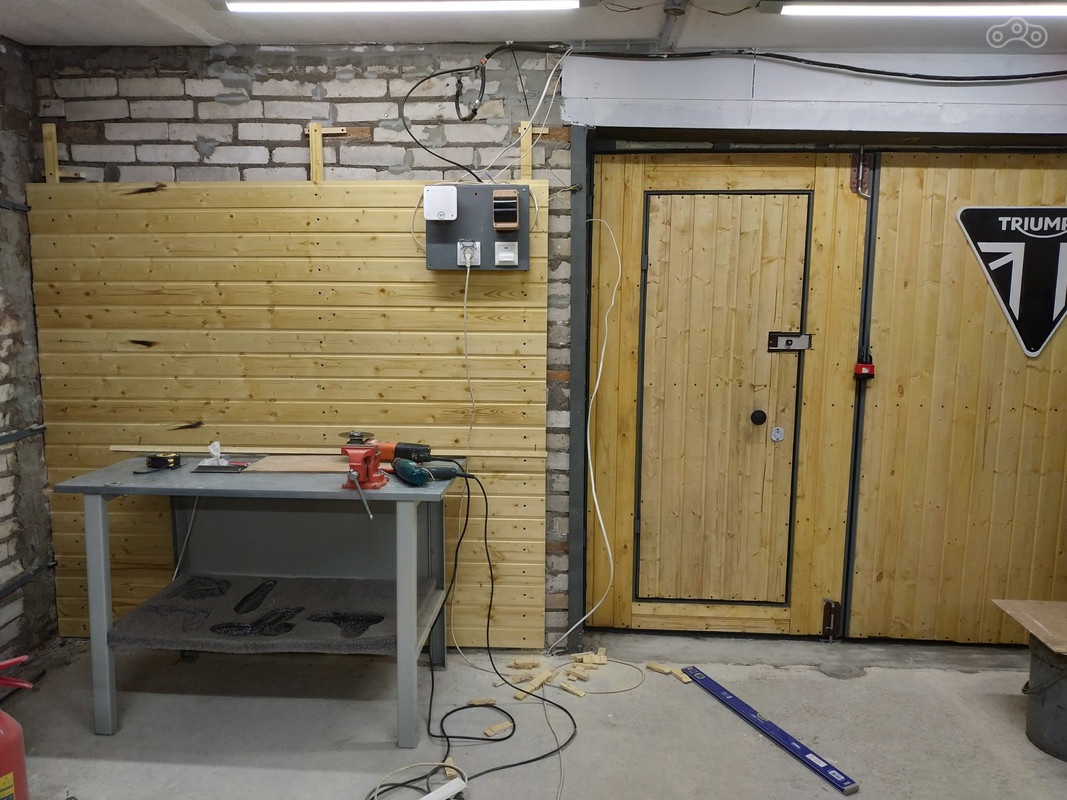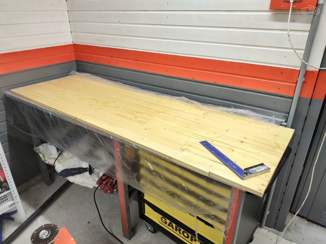В начале следующего этапа ремонта я решил «обустроить» рабочую зону с верстаком. Для беспокоящихся о возможном пожаре сразу скажу, что все деревянные материалы были в несколько слоёв обработаны огне-био-защитным составом.