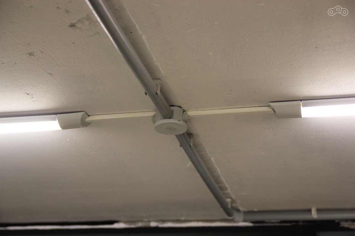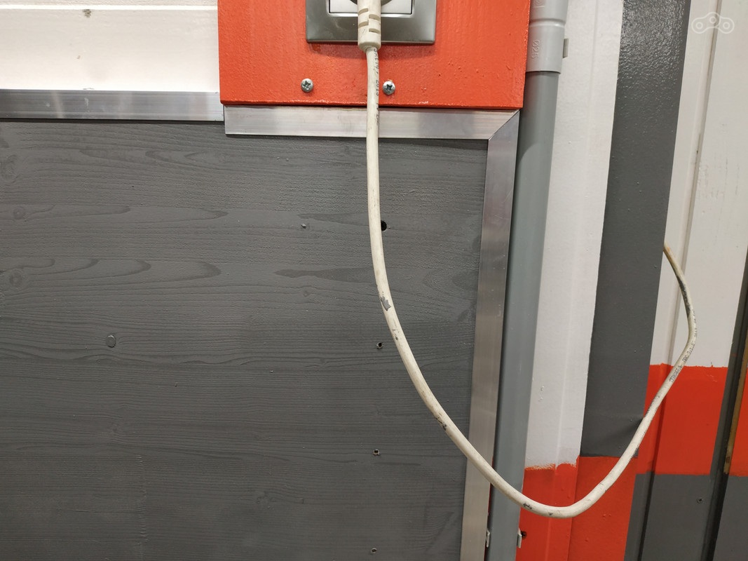 Если кто-то заметил на фотографиях выше кабель-канал, идущий по стене, то он загадочным образом исчез, а на его месте прочно обосновалась кабель-труба, как на потолке. Ну и новый облик «щитка» на фото: