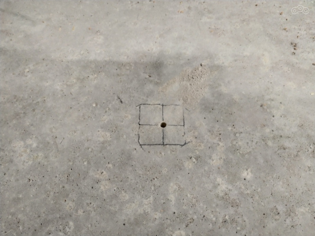 Для дальнейшей задумки моего грандиозного плана пришлось просверлить дырочку в бетонном полу и выпилить вот такую «зубастою» опору: