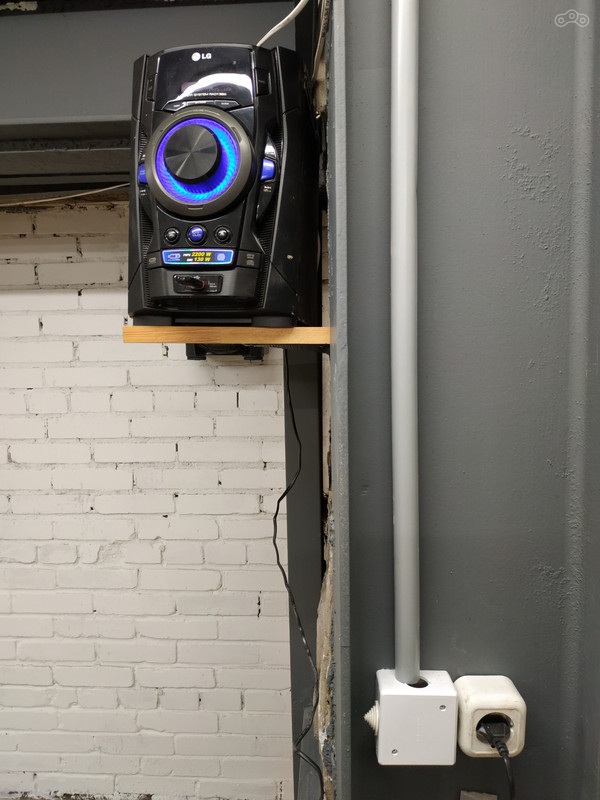 Повесил музыкальный центр временно на стену, чтоб не спотыкаться об него каждый раз, когда играю в тетрис мотоциклом, холодильником или стройматериалами.