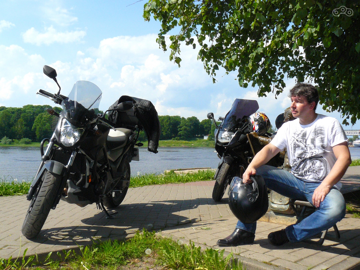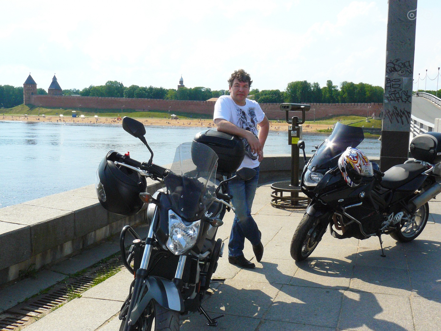 Ну а тут, как говорится, был повод - испекла.:)) Съездили, окультурились.... С погодой почти повезло, дождь застал только на обратном пути на подъезде к Питеру. А в Новгороде была жара! +32 градуса! Пришлось плюнуть на безопасность, снять куртки с защитой и рулить по городу и трассе в одних футболках и джинсах.