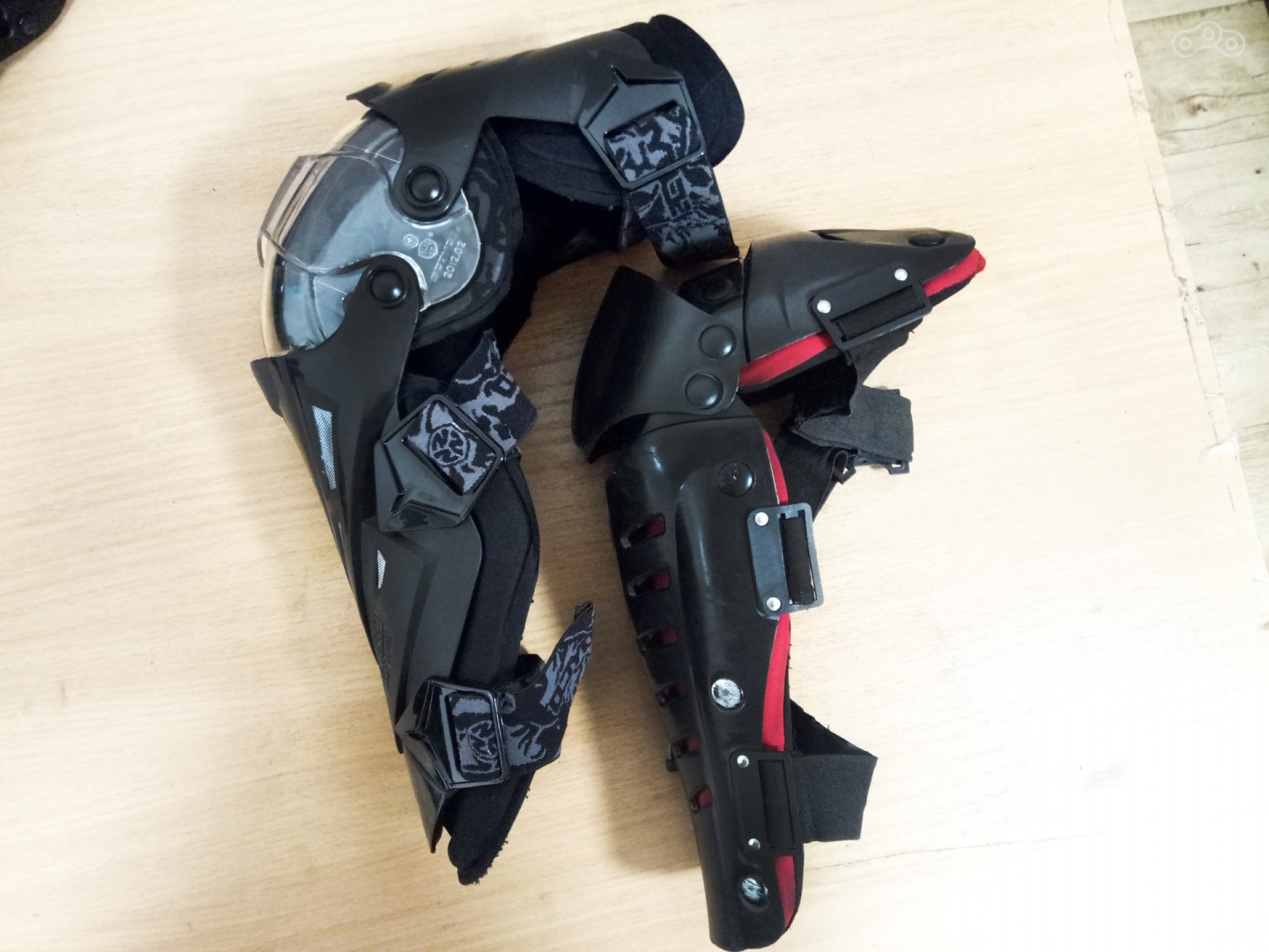 Колени Scoyco K12. Куплены зимой. Ну тут есть с чем сравнить, мои прошлые колени от китайского клона Fox служили мне верой и правдой четыре года. Ну как служили… первая пара сезонов была еще ничего, потом начали потихоньку умирать пластиковые шарниры и в итоге, прошлый год я просто надеялся не попасть в неприятности. Но мы уходим от темы. Итак K12, несмотря на то, что выглядят они внушительно, носятся крайне легко и комфортно, сказать честно после распаковки я думал, что придется обновлять гардероб на предмет более широких штанов. Но нет, на ноге они сидят вполне компактно, если можно так выразится. Защитные элементы покрывают большую часть ноги обеспечивая еще и защиту по бокам. Про здоровенный кусок пластика закрывающий коленную чашечку и говорить не приходится, все выглядит монолитно и надежно, шарниры металлические и расположены на расстоянии друг от друга, как итог ходить в наколенниках относительно комфортно, хотя все равно приходится периодически подтягивать их обратно вверх. Из минусов… да пожалуй лично мне не к чему придраться. Разве что сеточки вентиляции уж больно колхозно приклеены на термоклей. Но это не считается.