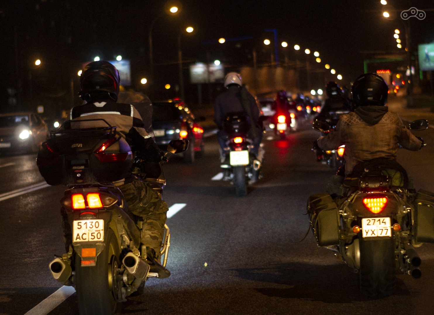Как и в случае с акцией против запрета междурядья, мотоциклетная колонна выдвинулась от ТЦ Формула Х в центр. В отличие от прошлого раза, колонна занимала 1-2 ряда, не мешая движению попутного транспорта. Первой точкой маршрута стала ул. Спиридоновка, где перед знаком образовался спонтанный затор из участников акции.