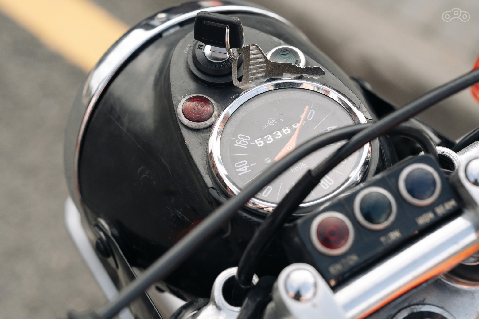 Самым дорогим приобретением стал ранний спидометр с «обратной» оранжевой стрелкой, его удалось «подружить» с ямаховским приводом спидометра. А вот пульты и рычаги остались родными, японскими, очень уж органично вся эта старорежимная фурнитура вписалась в облик рестомода.
