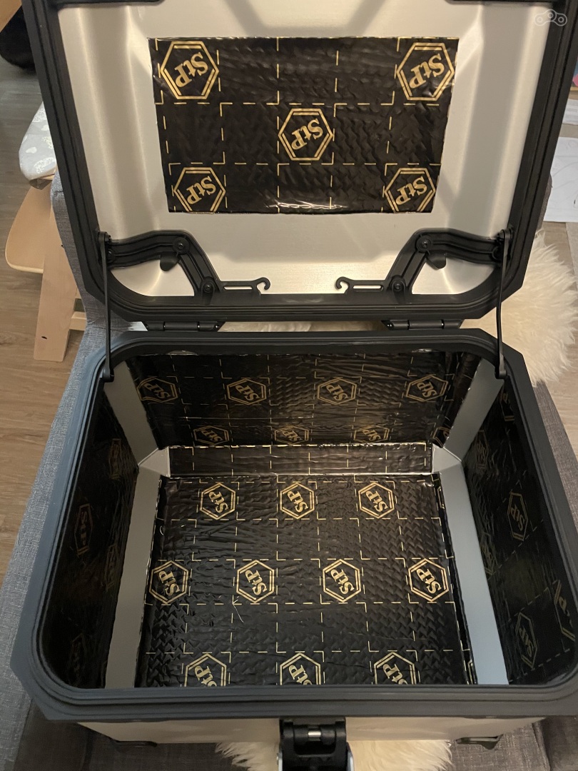Перед монтажом куфр на всякий случай проклеил разнообразными вибропоглощающими штуками. Надеюсь, греметь болтами на ходу не будет.