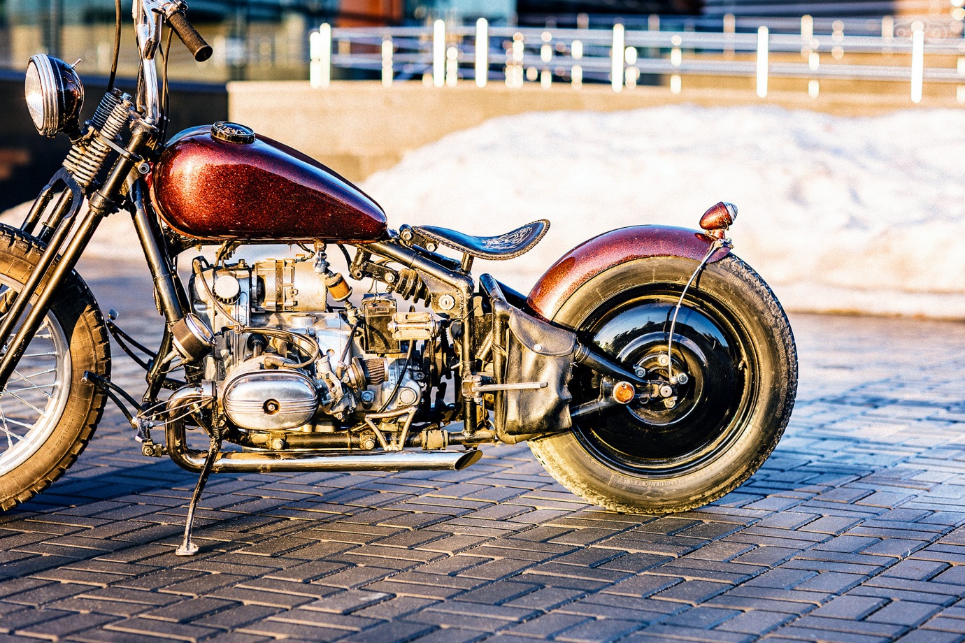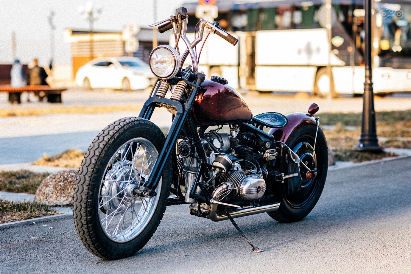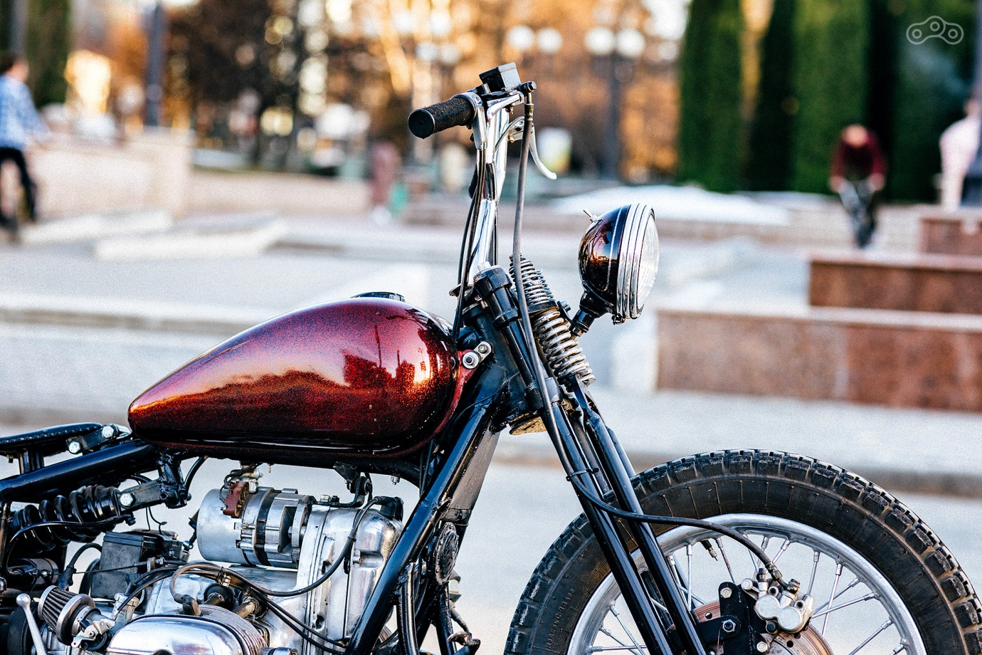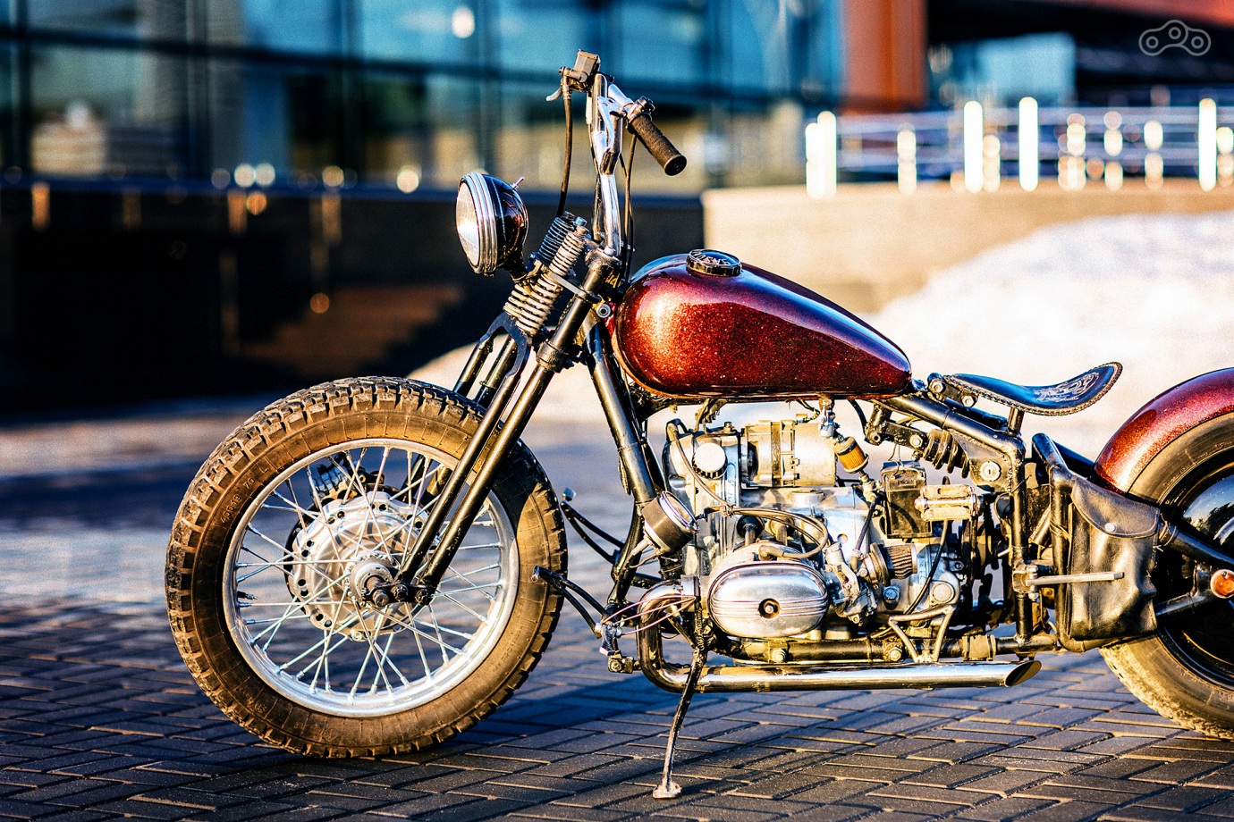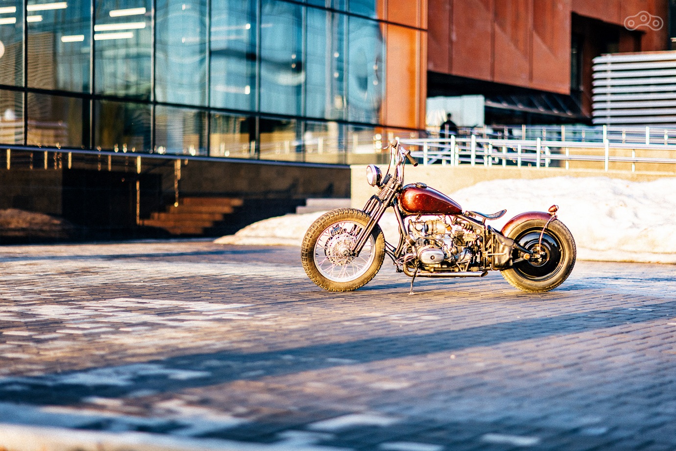 1. Мотоцикл построен на базе Урала в казанском Axl Custom Garage для регулярных покатушек и задачу свою выполняет полностью, в потоке не теряется, вид имеет. За счет небольшого веса и доработки двигателя динамика выросла и по ощущается лучше японских чопперов чесоток. Максималка по заверению Антона достигает 160 километров в час, что неплохо для советского оппозита.