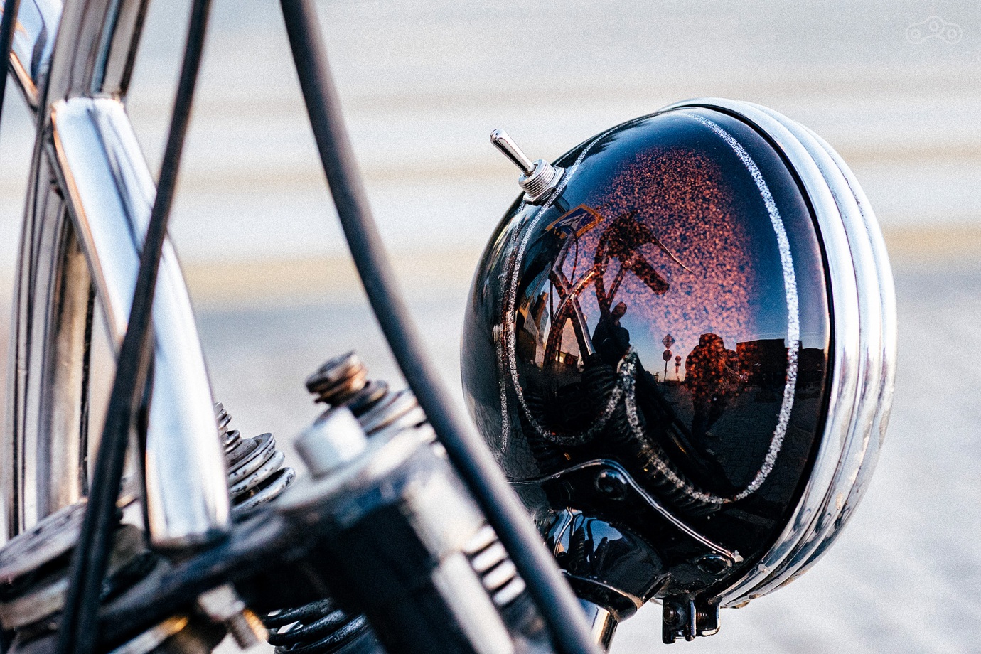 От себя хочу заметить интересное решение с фарой и тумблером выключателем на ней, а так же расположением спидометра, не ново, но всегда смотрится на ура.