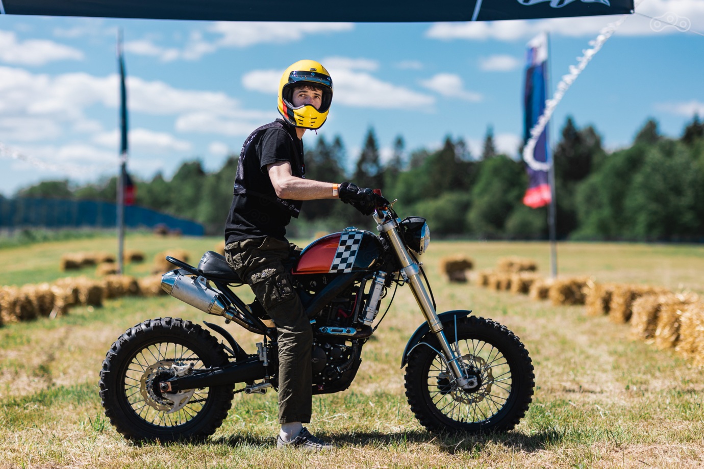 В начале июня недалеко от Москвы, а точнее в Новая Рига Park прошел очередной 4-й Countryside Custom Ride, который прежде всего ассоциируется с кастомной культурой, роскошью человеческого общения и веселыми стартами. Знаю, что организаторы проехали немало площадок и только эта дала согласие на то, что бы приютить мотоциклистов на пару дней. Единственный недостаток это невозможность поставить палатку в тени, в остальном все шикарно: бытовая часть и развлекательная была на уровне. Я же был прикомандирован, как один из двух официальных фотографов, поэтому пришлось немало походить по широкой территории и снимать больше обязательную часть, а не все подряд. Все-го же мероприятие посетило около 800 человек, что замечу немало и больше чем годом ранее. Начнем с разу с победителей в своих классах. Ну и пока Филипп не прикрутил галлерею - терпите.