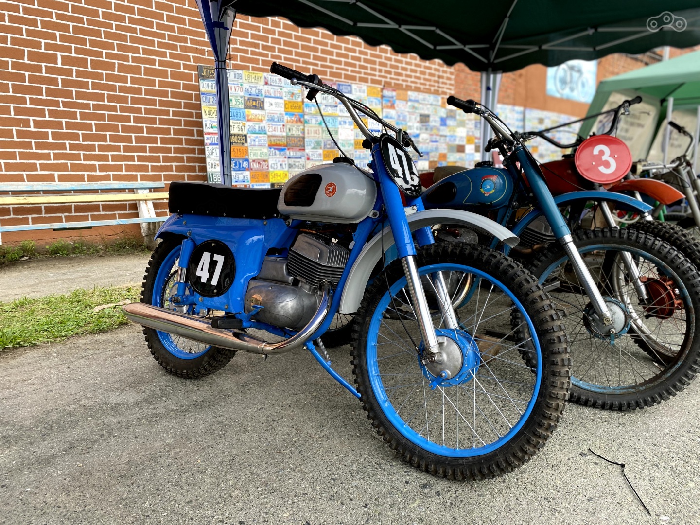 Несколько спортивных мотоциклов из коллекции свердловского коллекционера Виктора Венедиктовича Билецкого. На фото Минск кросс М-207К с двигателем от К-175СК 1967 г.