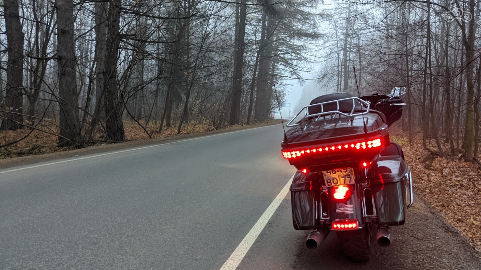 Оставались мелкие недочеты, но их уже можно было исправлять на ходу, так сказать. В основном бесил ржавый крепеж (мотоцикл 2015 года!), что для меня казалось дикостью и поплывшая краска крышек сцепления и тормоза - то, что было всегда на глазах. Протестировать мотоциклы было решено в поездке с друзьями в Тулу, чтобы наконец понять, что за зверя я взял. Оказался - бегимот. Громкий, хорошо управляющийся, но тяжелый и неохотно тормозящий. Впервые в жизни я задумался о наличии задней передачи у мотоцикла. Чувствуется мощь мотоцикла, но динамика это не его, подвеска Showa, но даже 47мм не справляются с его весом, раскачиваясь при каждой остановке/старте. А вот для чилового передвижения, с мягкими стартами, неспешным набором скорости и комфортным поглащением сотен километров - мотоцикл справляется выше всяких похвал. Надо сказать, что это первый мой мотоцикл с музыкой, к которой я раньше относился очень "не очень", но здесь 4 динамика с усилком HK, которые вывозят даже когда едешь 90 миль в час).