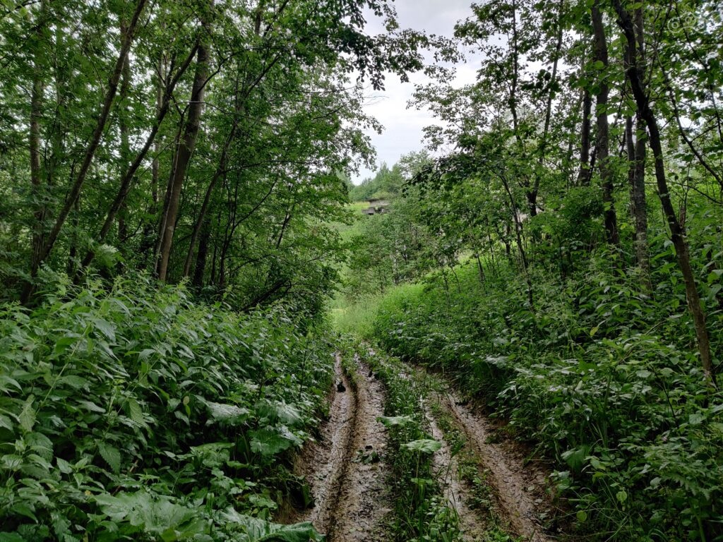 Наш путь начнётся отсюда, прямо от этой кучи мусора. Конечно, на деле он начался куда раньше — пару часов назад, от гаража, Honda NC700 и BMW R1200GS неторопливой походкой бывалых туристов катнулись сперва по вылетной магистрали Москвы, потом по МКАД и по Киевскому шоссе. Дождь, что должен был пролететь нам навстречу, решил задержаться в этих богатых зеленью местах, создавая тот самый уютный шум под который хорошо бы спать, а не идти и аплодировать настойчивости комаров и слепней.