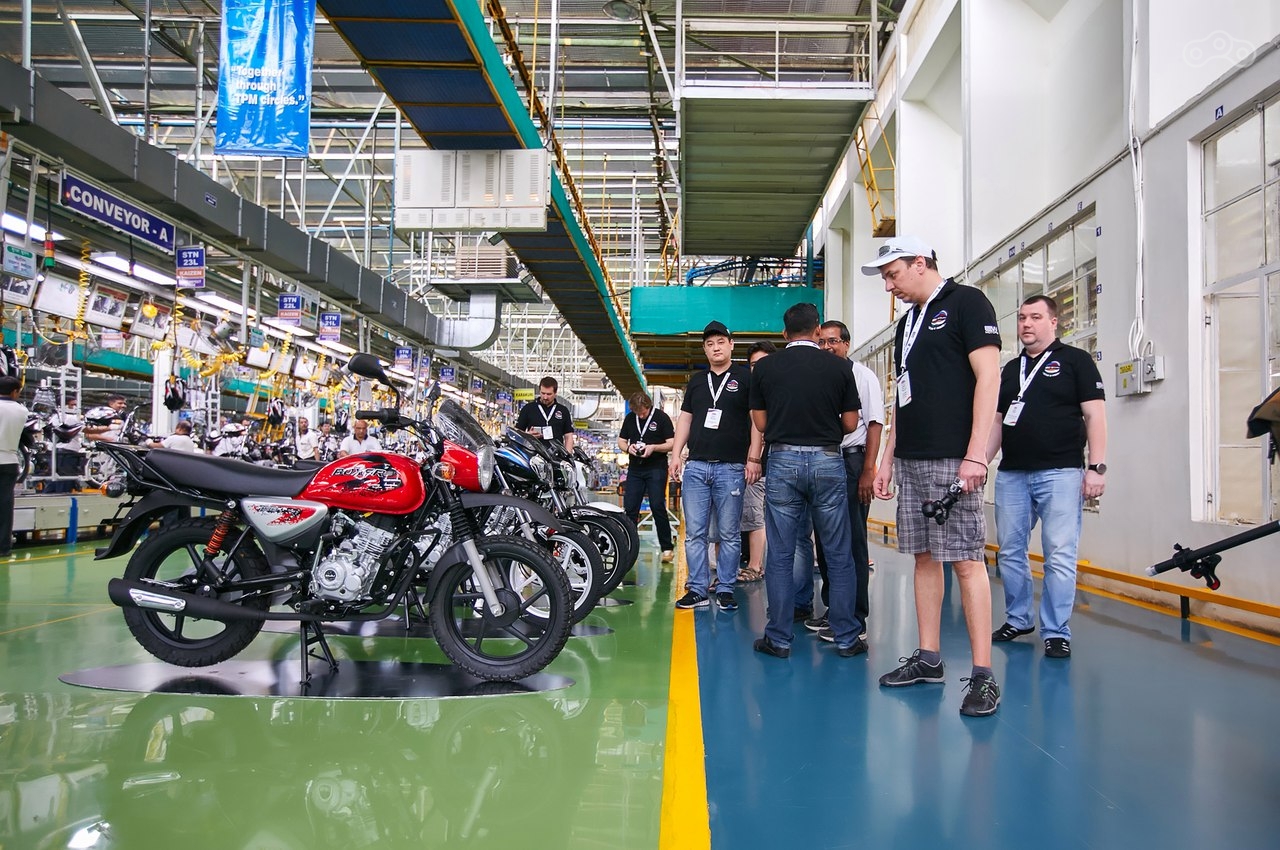 Начать индийские организаторы видимо решили от простого к сложному, с фабрики Bajaj Waluj в Аурангабаде: нам презентовали конвееры, на которых рождаются мотоциклы Boxer 150, Avenger 220, квадрицикл Qute и трицикл Maxima.
