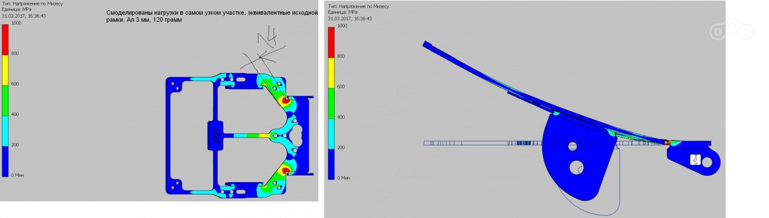 Итак. расчет напряжений рамки с исходными слабыми участками рамки крайзи.