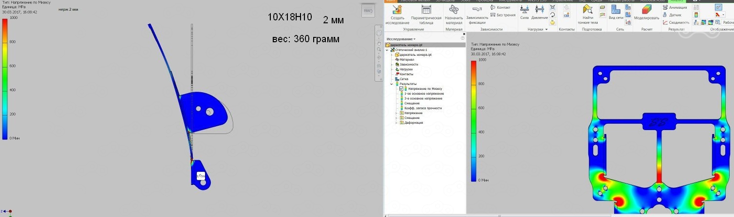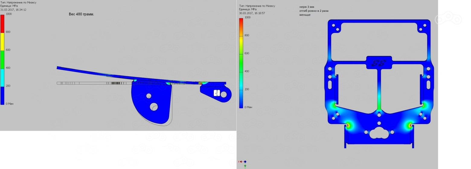 Ниже представлены расчеты разных конструкций при одинаковых нагрузках (260 км/ч и перпендикулярный поток воздуха - это очень высокий запас поскольку под сиденьем никогда не будет воздушного потока со скоростью 260 км/ч да и поток под углом направлен.