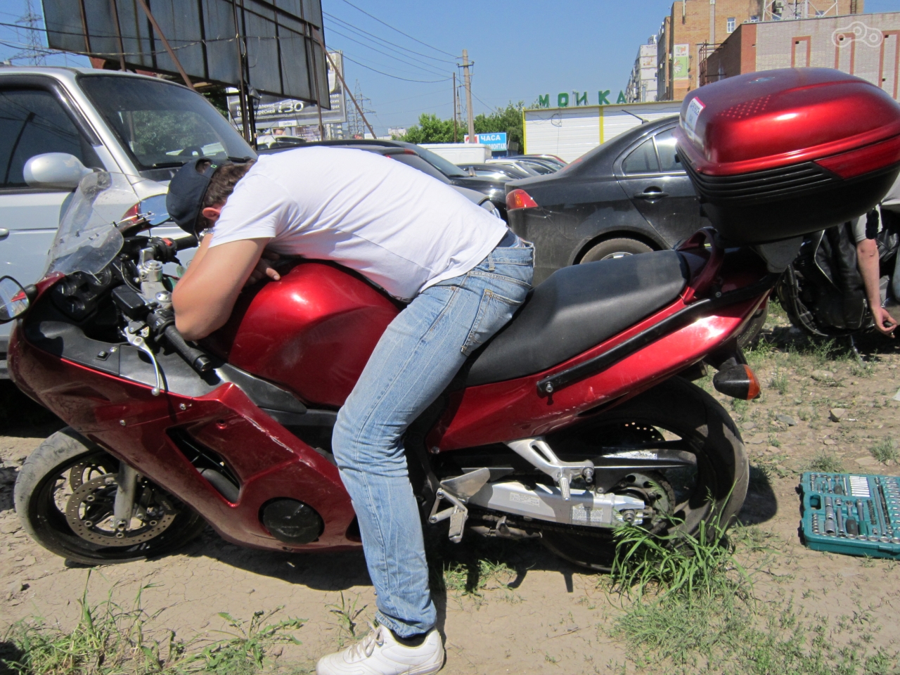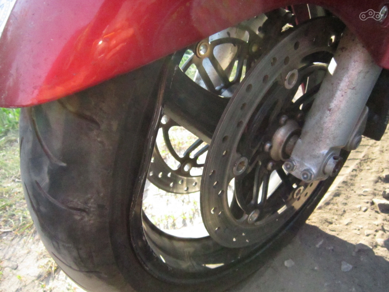Именно мой CBR1100 отличился круче других, помимо вмятины диск ещё и лопнул