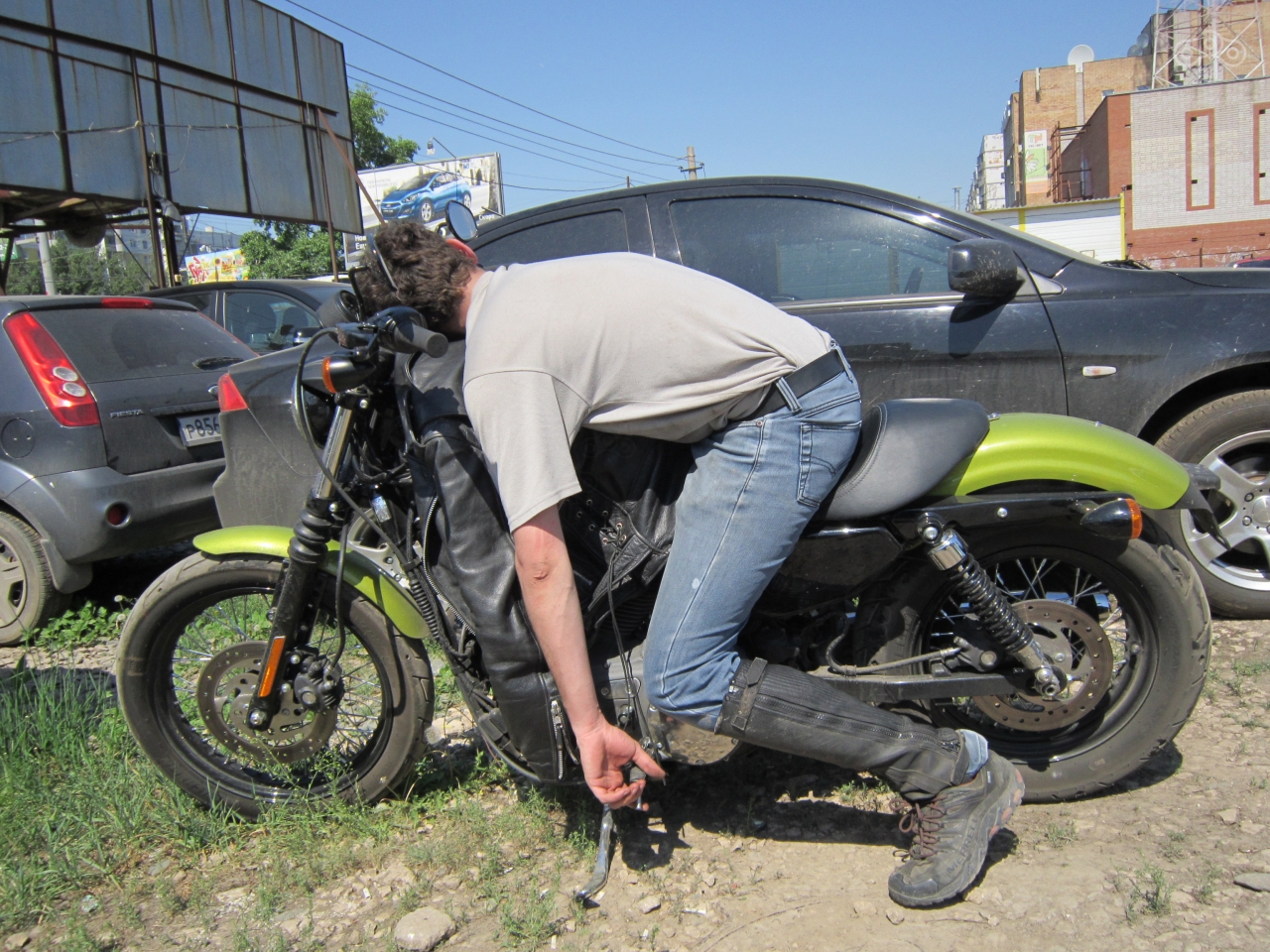В попытках скоротать время унылого проезда в фургоне, позвонил оставшемуся в Москве одноклубнику с просьбой найти контакты самарских байкеров, друг в свою очередь засыпал меня сообщениями с телефонами и координатами. Звонок за звонком, кто не доступен, кто с детьми, кто в отъезде… и тут в очередной раз, о чудо! Не совсем трезвый голос сообщил, что сейчас бухает и дома будет поздно, но дома жена – так что пишите адрес. Также хорошей новостью стало то, что ремонт литых дисков в Самаре есть, но в выходные он закрыт, что откладывало мое появление на работе как минимум до вторника.