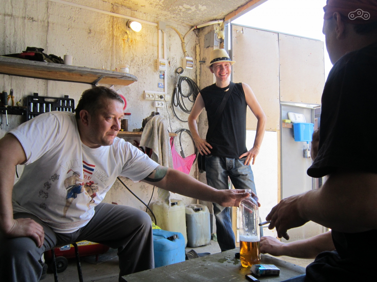 Три часа спустя мы уже выгружали мотики, заносили барахло в квартиру и готовились к ночлегу. Антон, так зовут человека, пустившего 11 немытых и уставших мотоциклистов к себе в квартиру, принес кучу бутылок с непередаваемо вкусным разливным пивом, отварил пельменей и до глубокой ночи мы сидели на кухне за разговорами, периодически теряя срубаемых усталостью товарищей.