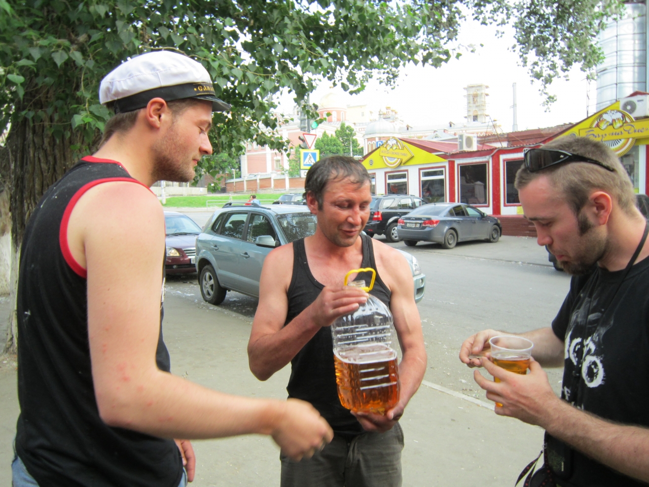 Мы сидели и пили пиво с раками из Волги, потом прогулка по набережной, самарский пивзавод и вот оно то, к чему все так стремились, то самое загадочное «Дно». Как выяснилось – это местный бар при пивзаводе, под названием «На дне». Внутрь почему-то никто не ходит, и пиво покупают в окошке на улице. По народному поверью, пиво, протекая из шланга в тару должно быть одуто ветром с Волги, иначе вкусовой букет всех красок не наберет. К ценителям модных алкогольных напитков себя никогда не причислял, и в букетах вкусовых не разбираюсь, но пиво в Самаре действительно, лучшее, из всего, что мне, когда-либо доводилось попробовать, настоящее оно там, живое с большой буквы «Ж».