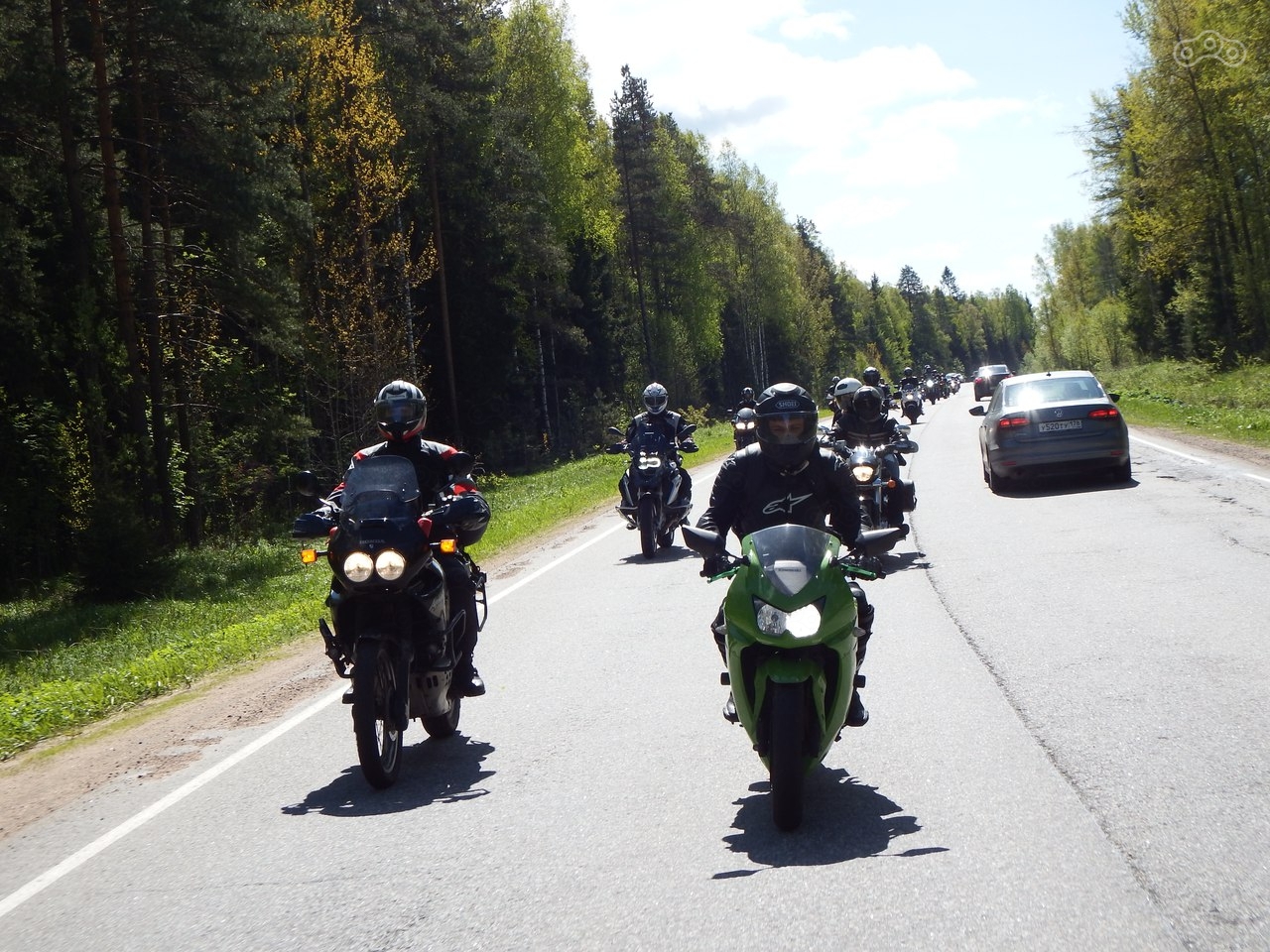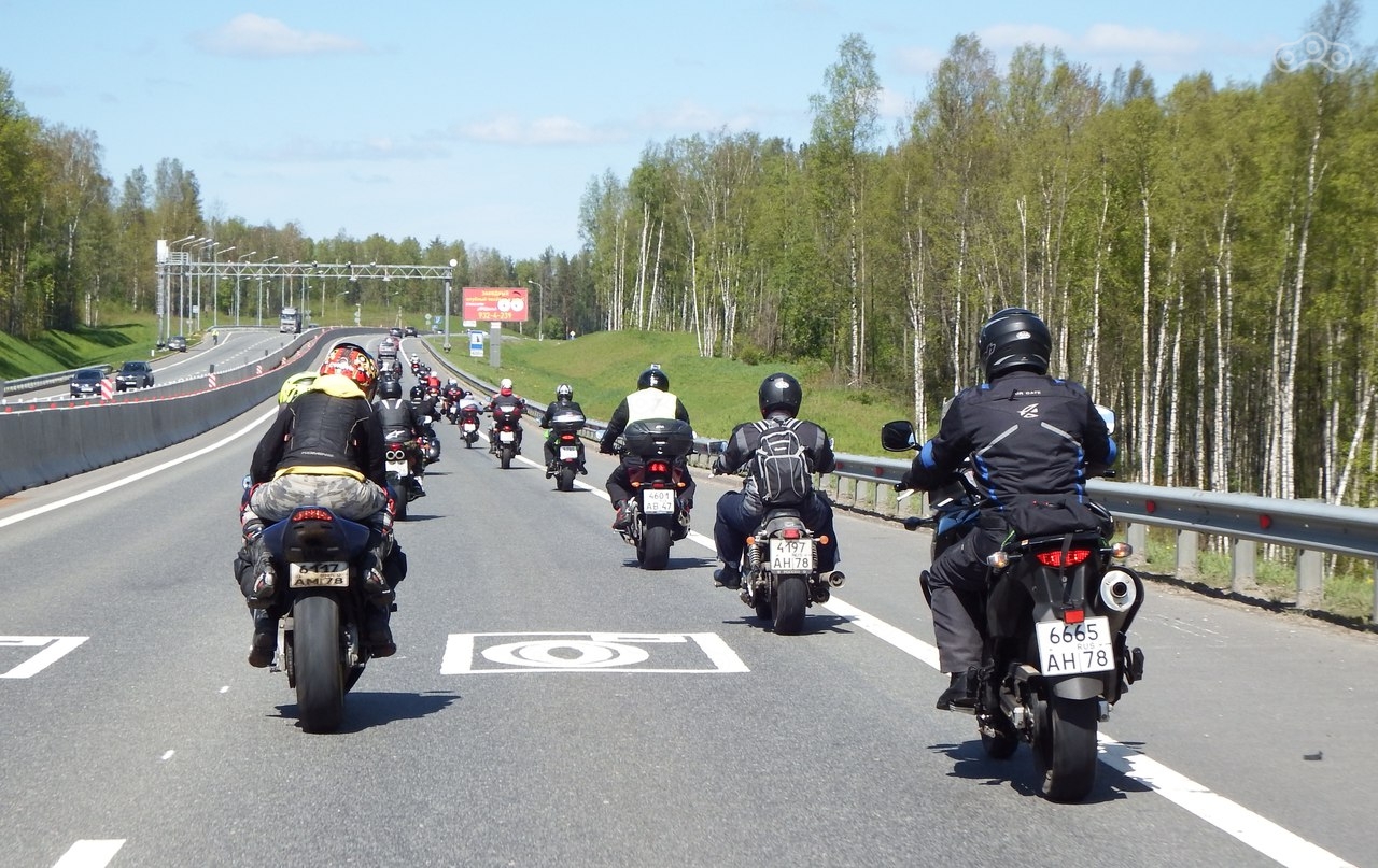 Однако, несмотря на это, не все решились отправиться по Оранжевому маршруту до границы с Карелией, а кто-то не смог поехать из-за переноса даты мероприятия. Тем не менее, утром 4 июня на парковке ТРК «Китай Город» собралось более 30-ти мотоциклистов — больше, чем в предыдущую поездку по Красному маршруту, кроме того, по пути следования к нам еще присоединялись мотобратья.