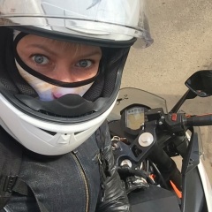 Бамблби! Превееед! С первого взгляда мягко говоря непривычный дизайн Bajaj Pulsar RS 200 сморщил мои бровки. Но с лица же воду не пьют. А вот со стороны кокпита и седла удовольствие получают. Ну что, все как обычно. Сели, завелись, поехали. Едем, прогреваемся, привыкаем. Начинаем потихоньку шалить, вилять, ускоряться, притормаживать. Легкий, узкий, послушный, словно хорошо выезженный конь! Открываюсь сильнее, еще сильнее, на всю дырку! По всем параметрам ожидания, как от 400-ки, и в какой-то момент я забываю, что пока еще он 200-ка. Чувствую, что могу больше, чем он, но резине не доверяю, не посмотрела какая – мой промах. Рисковать не хочу, поэтому в повороты вхожу с запасом ресурса своих умений и амбиций. Тошню короче. Держит, верю ему, провоцирует на большее. В поворотах – нет, не знаю резину. На прямой – газ до отказа. 140 км/ч. Выжимаю дополнительные единички. Забываю, что мотор на обкатке. Немножко стыда, но заигралась уже. Красная зона доминирует. Хочется большего. Но прямик заканчивается, как и возможность Bajaj Pulsar RS 200. Bybre оттормаживают нас перед входом в поворот четко и своевременно. На втором круге уже и предсказуемо.