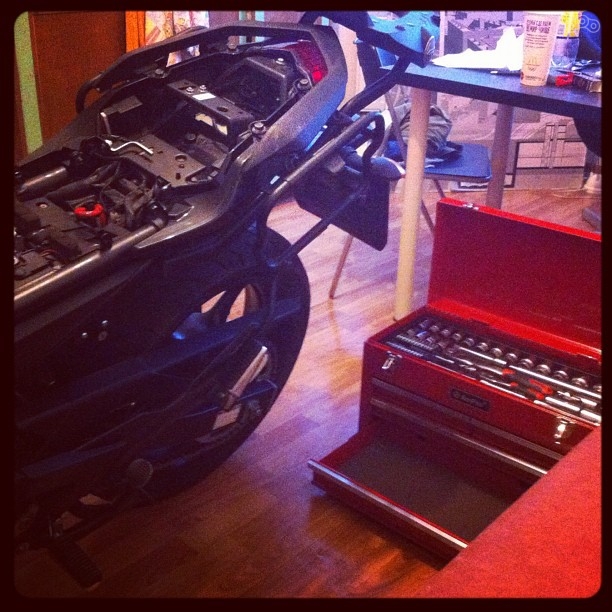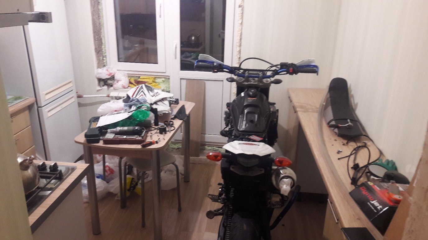 Я даже открывал крышечку подышать иногда. :)Cyrix, а с кухней, в моём случае это было перемещение по квартире для фотосессии в начале сезона) По задумке, мотоцикл просыпался, завтракал и катился гулять)
