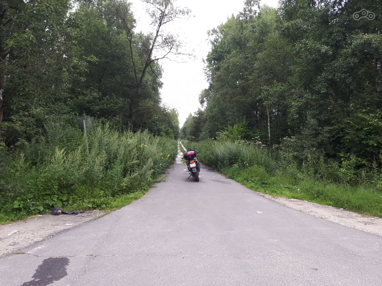 А вот "Перпендикулярная к основной дорога с искусственными неровностями" я не нашёл, о чём жалею, ведь неровный асфальт - самая предпочтительная поверхность для моего мота. Есть и ещё один интересный момент - утверждается что полигон заброшен, но это не так - объект действующий, хотя в тот момент когда там был я, испытания не проводились. И да, вас могут и не пустить на территорию. Не потому что я особенный, а потому что испытания.