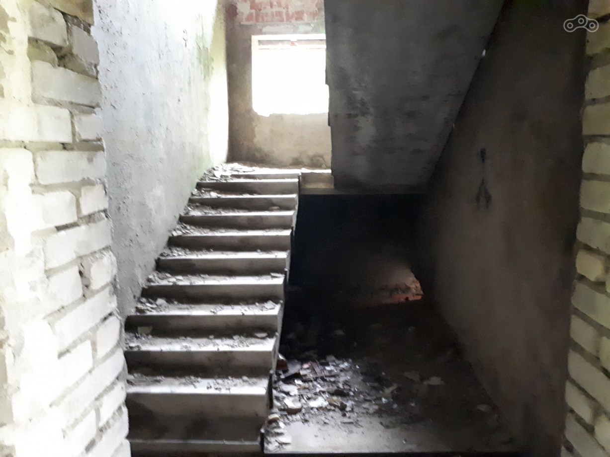 А вот и лестничный пролет, висящий в пустоте. Разведав пешком, пробую подобраться на мотоцикле ради удачного кадра.