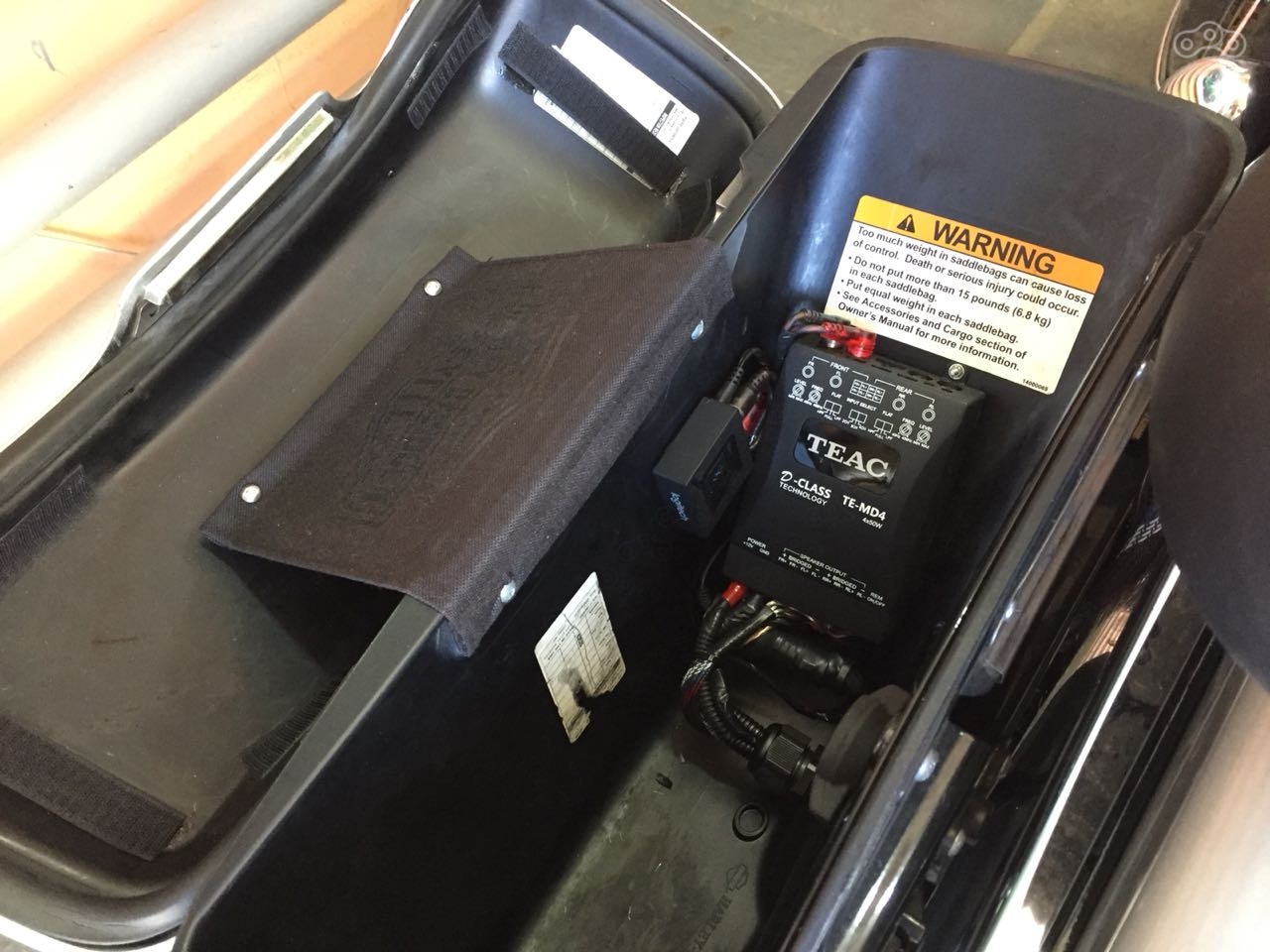 Закончен очередной проект, мотоцикл HARLEY-DAVIDSON. Установлен усилитель TEAC, блютуз адаптер Logitech,