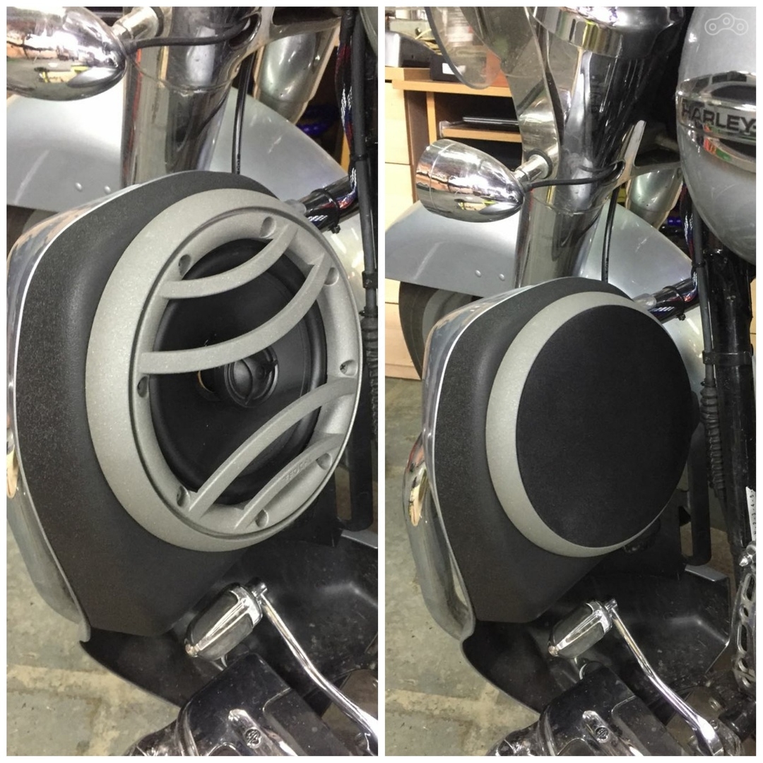 колонки на руль были предоставлены владельцем мотоцикла, мы постарались вписать их в общую концепцию проекта покрасив фактурной краской.