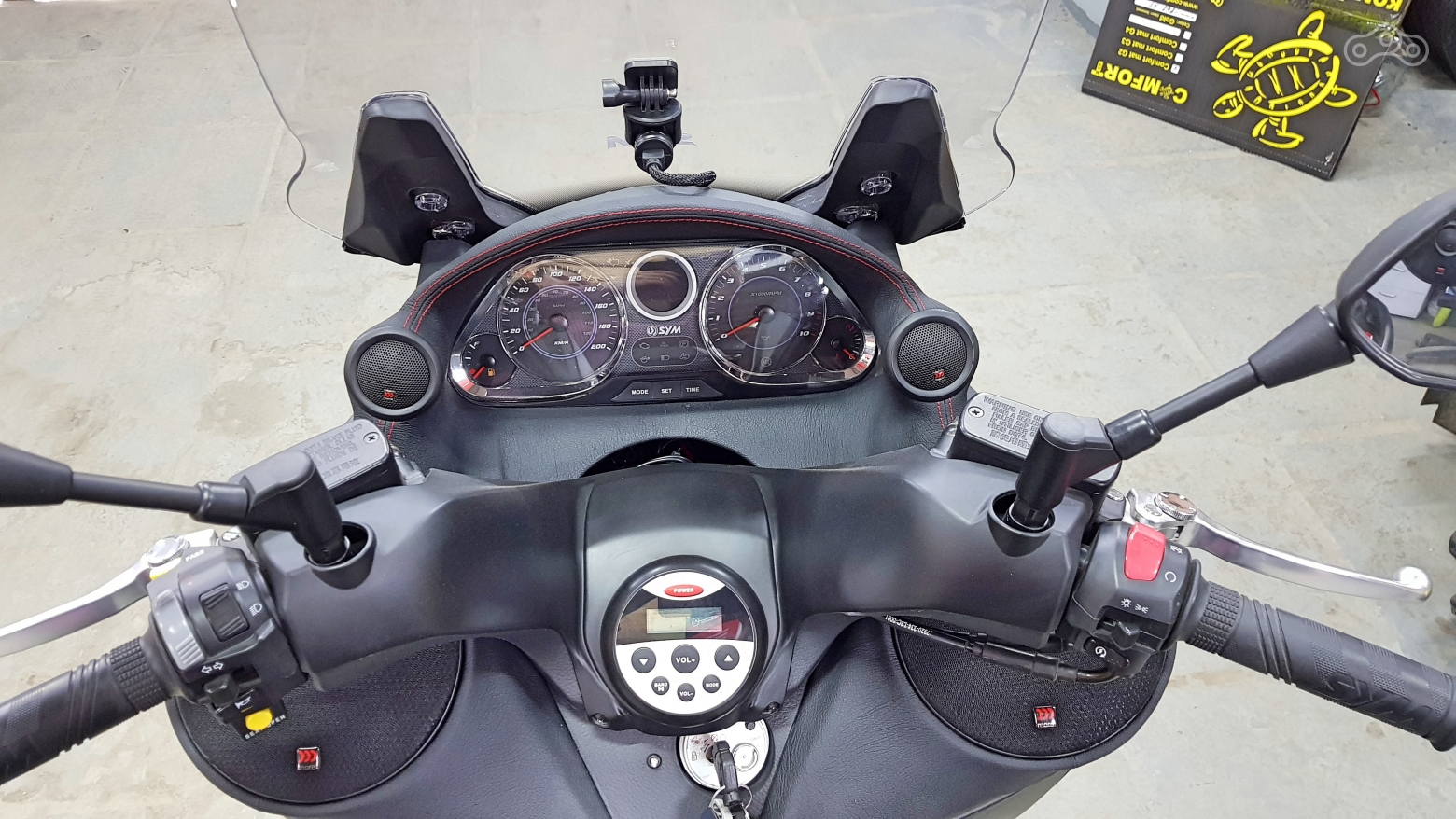 Так же, владелец пожелал установить регистратор и грипсы с подогревом. Без проблем, надо так надо.