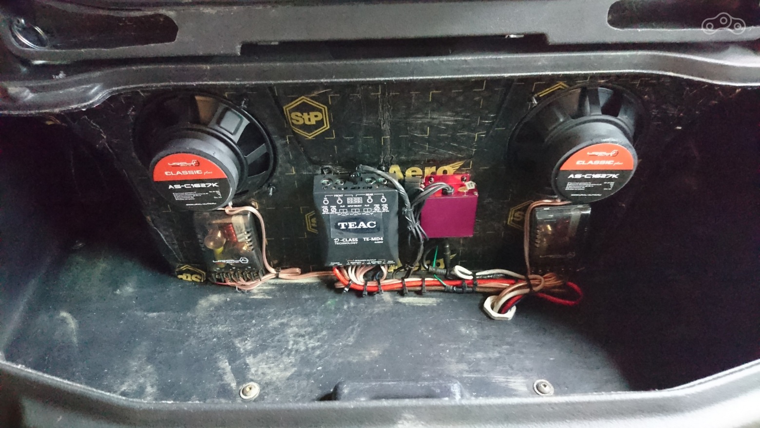 Тыловые динамики и усилитель установлены в заднем кофре и с их монтажом трудностей не возникало.