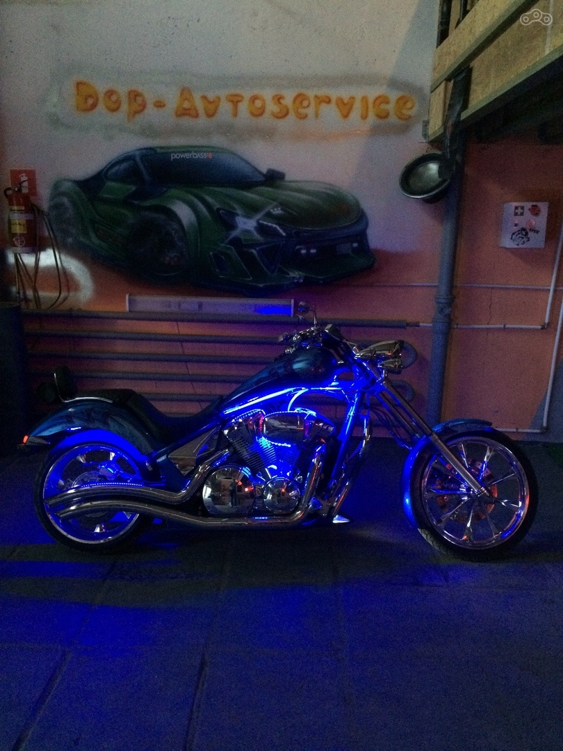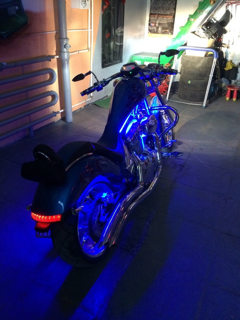 Шикарная Honda Fury. На данный мотоцикл мы установили светодиодную подсветку, что придало ему законченный и неповторимый внешний вид.