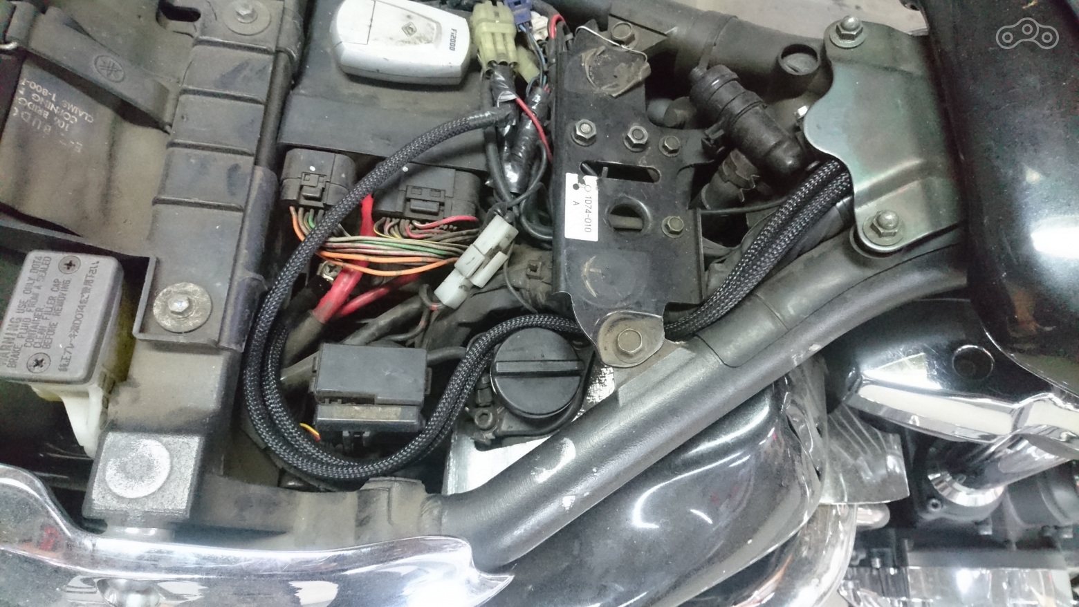 Силовая проводка протянута вдоль штатной, защищена ''змеёй'' и оборудована колбой с предохранителем.