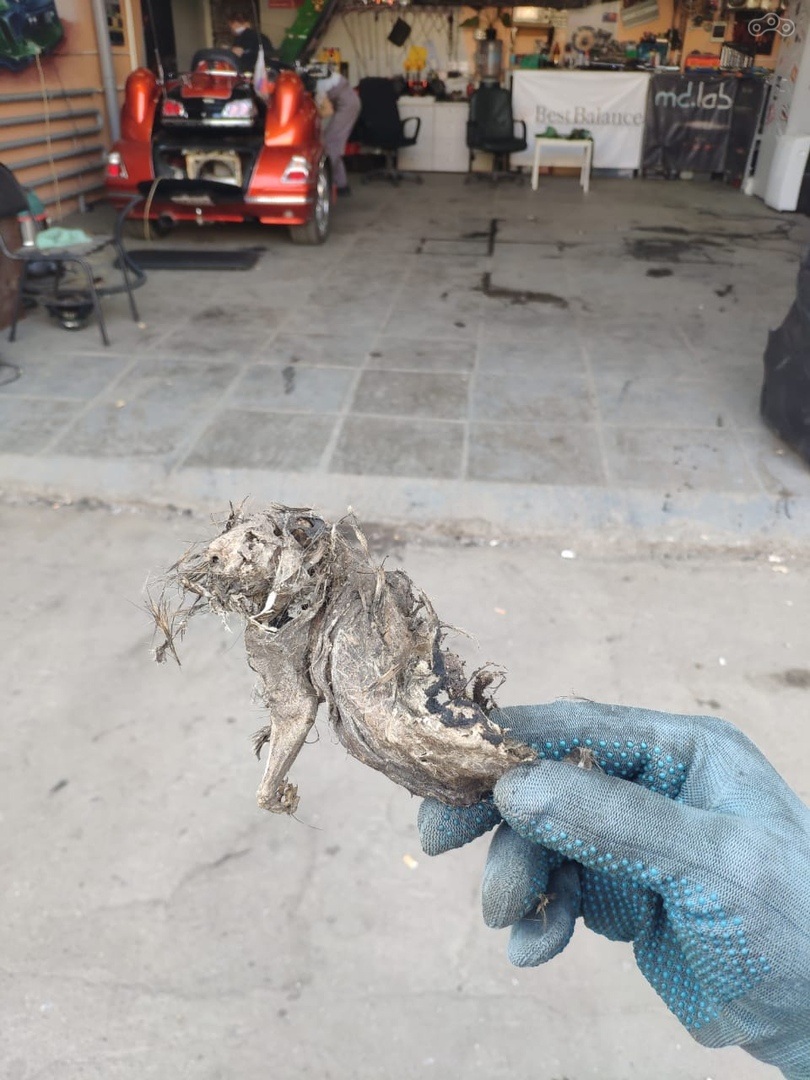 Но самым страшным, что мы обнаружили, это поразившая сабвуфер плесень или грибок, а из пространства между головкой сабвуфера и редуктором нам пришлось доставать семейство дохлых крыс. Никогда ранее мы не сталкивались с такими ситуациями.