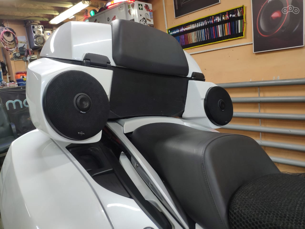 Из левого кофра изготовлен корпус сабвуфера под 10 дюймовую голову ALPINE type R.