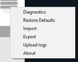 Помимо диагностики, можно сбросить все параметры в умолчание, сохранить или загрузить преднастроенный набор и даже отправить диагностическую информацию разработчику.