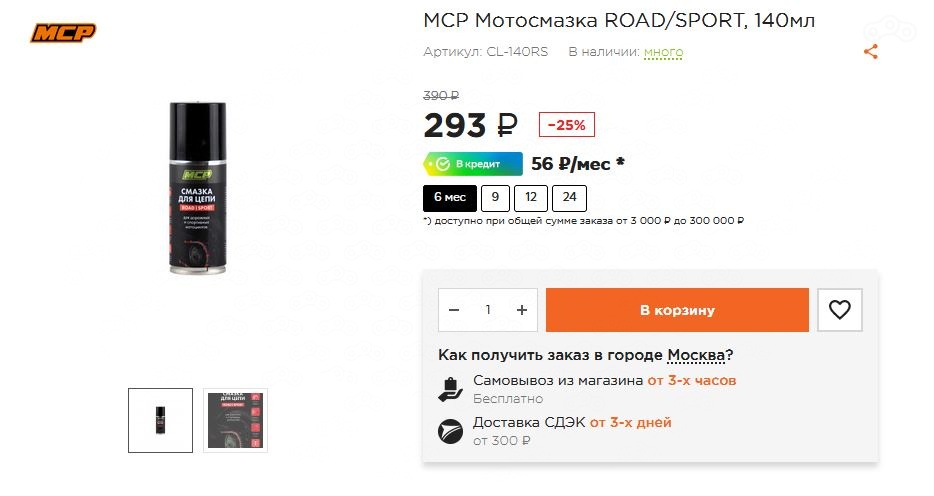 Вот такой попробуйте. Балончик крохотный, поместится везде. Тоже хватило на 4000 км, наносил раз в тыщу аккуратно на сальники. Хорошо держится на цепи и не засирает пол мотоцикла