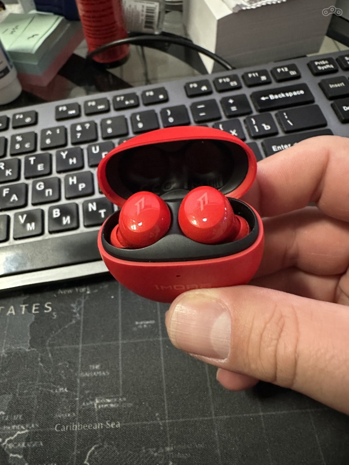 Малюськи размером с рубль каждый. Кейсик так же весьма миниатюрен. В комплекте три вида амбушюр, для разного размера ушных каналов. Звучат басисто, выразительное! Могут весьма громко.