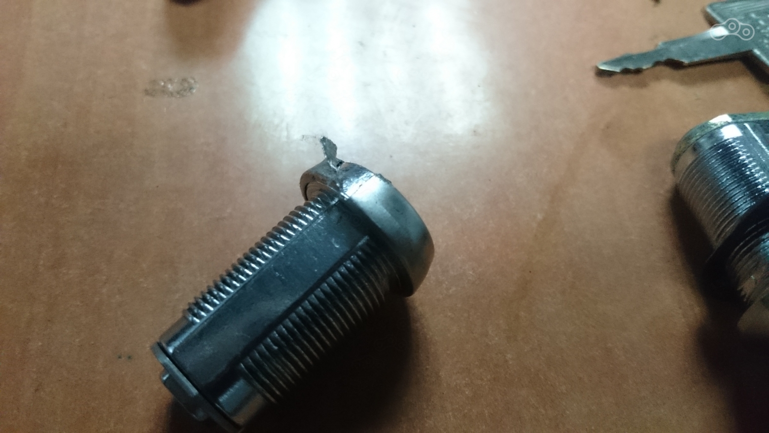 На практике это означает, что ключ придётся шевелить в замке, чтобы повернуть. Не очень удачно. Поэтому я напильником стачиваю выступающие грани. Само собой это опять же уменьшает надёжность замка, потому что фактически 2 рамки теперь могут принять не только мою толщину ключа, но и соседнюю. С другой стороны, я уже говорил что не переживаю по этому поводу, так что повторяю операцию со вторым замком. Из-за того, что второго болта у меня не было вообще, пришлось завернуть тем что было: