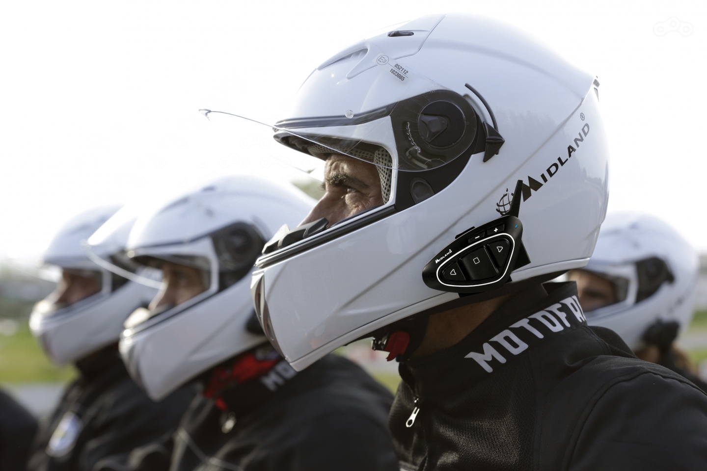 Важной особенностью этой гарнитуры является режим интеркома, благодаря которому BTX1 PRO совместим с гарнитурами других брендов. Радиус действия всего 300 метров, зато Midland предлагает уникальную опцию – светодиодный стоп-сигнал, который загорается при экстренных торможениях. Помимо этого, Midland BTX1 PRO имеет отключаемую систему шумоподавления AGC, FM-радио с RDS, возможность управления голосовыми командами и голосовыми же сообщениями о состоянии устройства, а также «Мидланд» предлагает и приложение для смартфонов, благодаря которому можно осуществить быструю настройку гарнитуры.